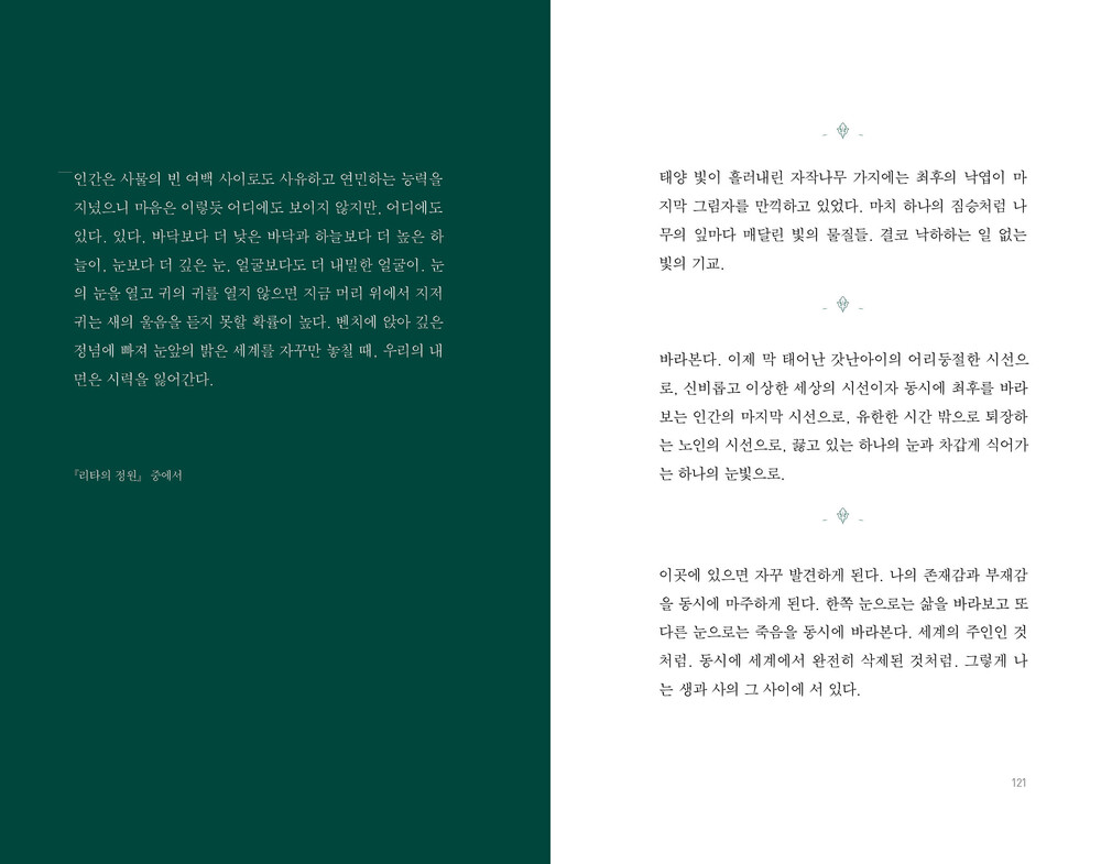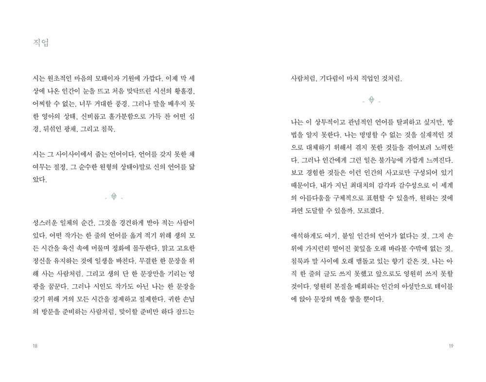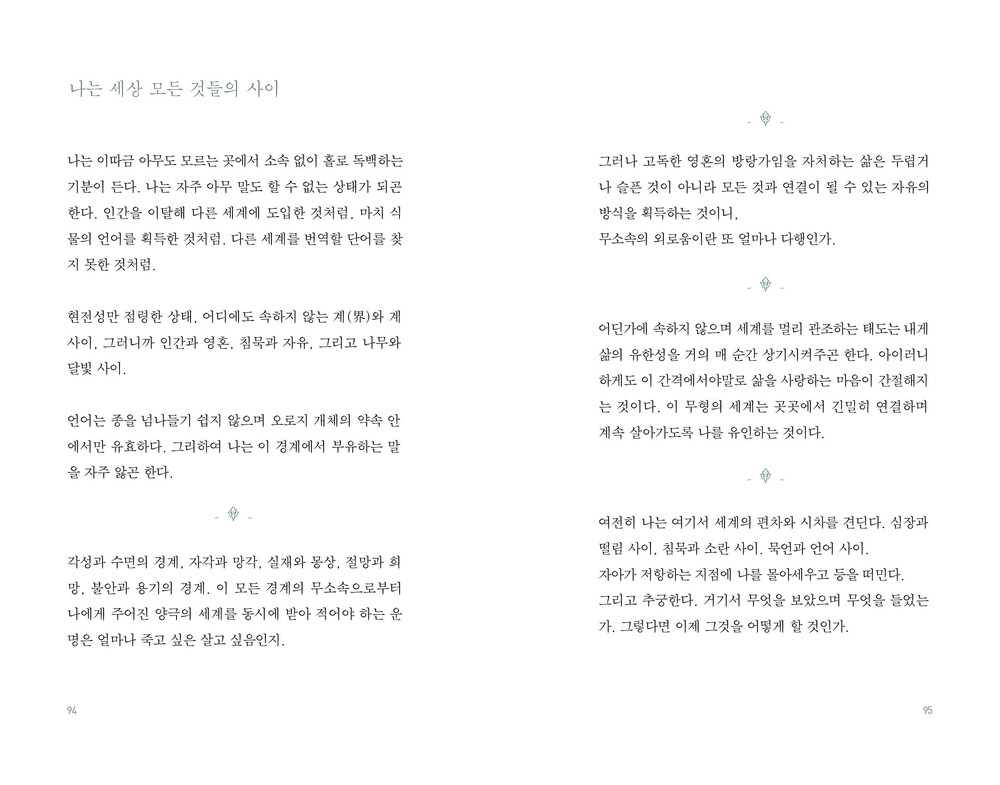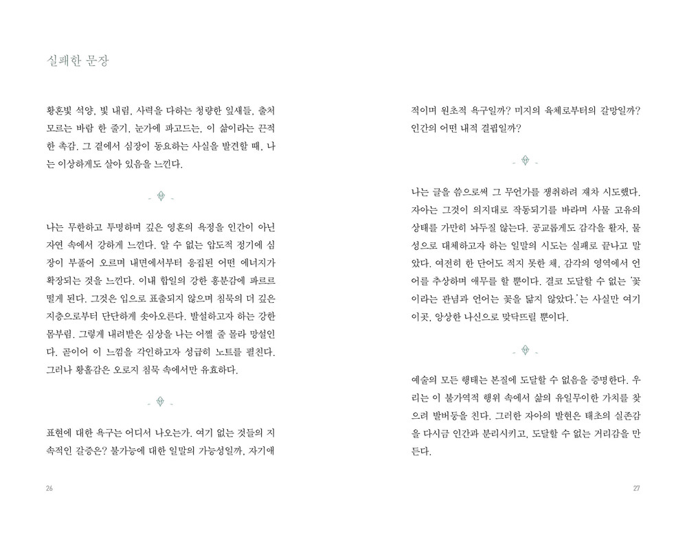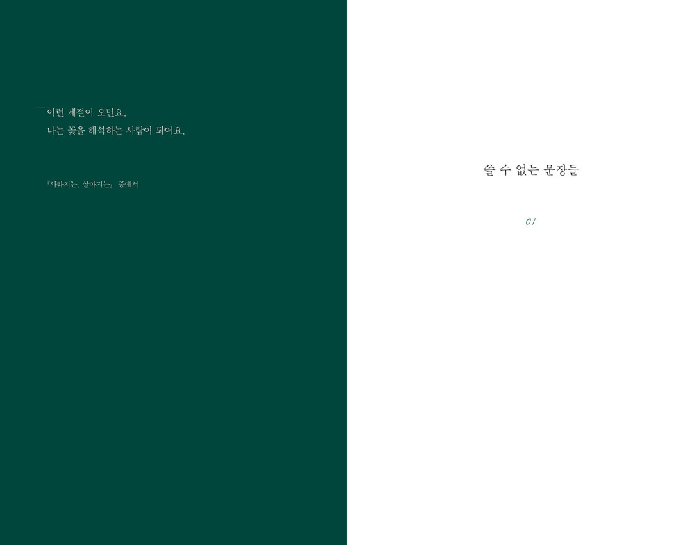「쓸 수 없는 문장들」은 문장과 삶 사이에서 그리고 세계와 나 사이를 오가며 마주한