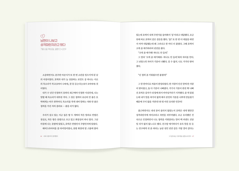 아내 4년 차가 된 저자가 결혼을 결심한 이후부터 남편과 벌인 부부싸움의 기록을 모은 책입니다.