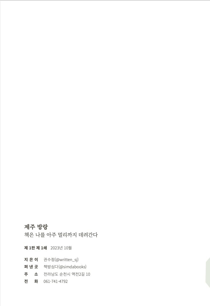 제목: 제주방랑(책은 나를 아주 멀리까지 데려간다)