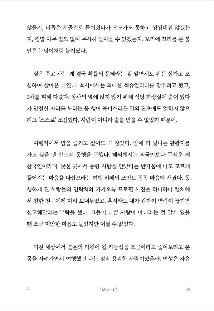 p. 191 제일 두려운 건, 지금은 이걸 욕망했다가 미래에는 다른 것을 욕망하게 될지도 모른다는 것. 나도 나는 모른다는 것. 그러나 또 이곳에서 다짐한 것은, 마음 바뀌면 언제 그랬냐는 듯 방향을 틀면 된다는 것. 다만 내가 그리할 수 있는 인간이기를 기도하는 수밖에. 사람은 타인이 욕망하는 걸 같이 욕망하는 존재라는데. 너와 나의 삶이 다르지 않은 것은 결국 너와 나의 욕망이 다르지 않기 때문일 거다. 우리가 서로의 욕망에서 눈을 돌려 내 안에서 솟아나는 것들을 볼 수 있다면, 각자의 모양대로 다 다르게 살 수 있을 텐데.