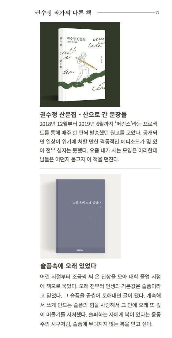 <권수정 산문집>, <슬픔 속에 오래 있었다>를 독립출판했다.