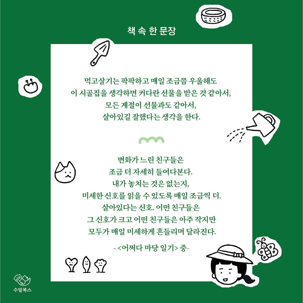 더불어 시골이든 도시든 어딘가에서 각자의 마당을 일구며 열심히 살아내는 모든 이들에게