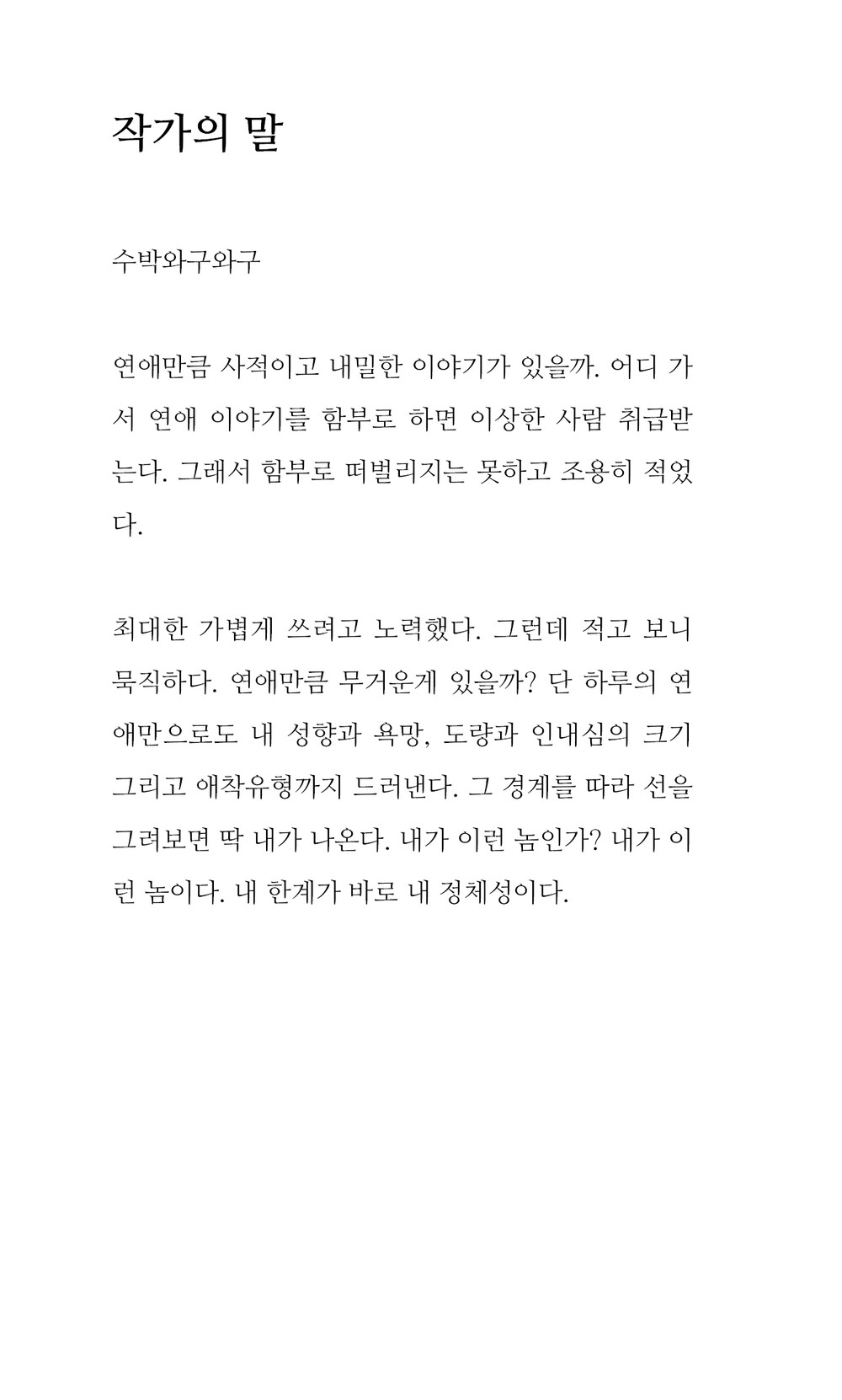연애만큼 무거운게 있을까? 단 하루의 연애만으로도 내 성향과 욕망, 도량과 인내심의 크기