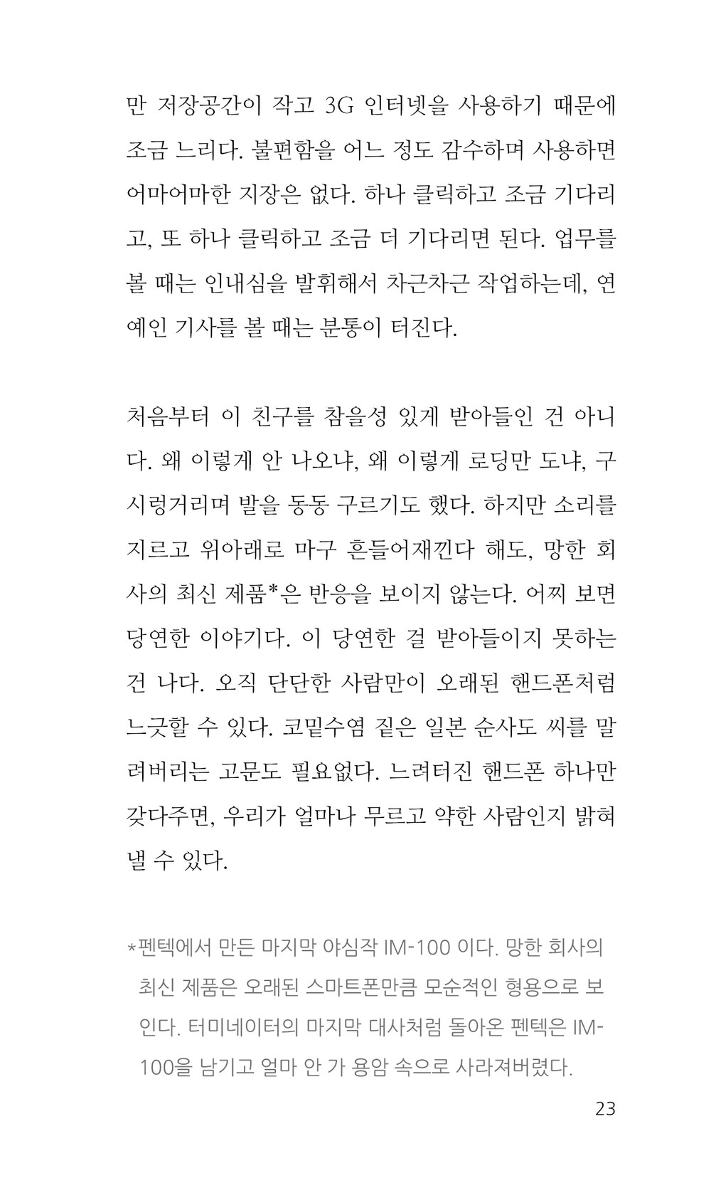 느려터진 핸드폰 하나만 갖다주면, 우리가 얼마나 무르고 약한 사람인지 밝혀낼 수 있다. 23