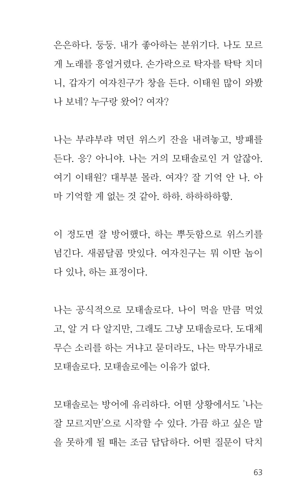 도대체 무슨 소리를 하는거냐 고 묻더라도, 나는 막무가내로 모태솔로다. 모태솔로에는 이유가 없다. 63