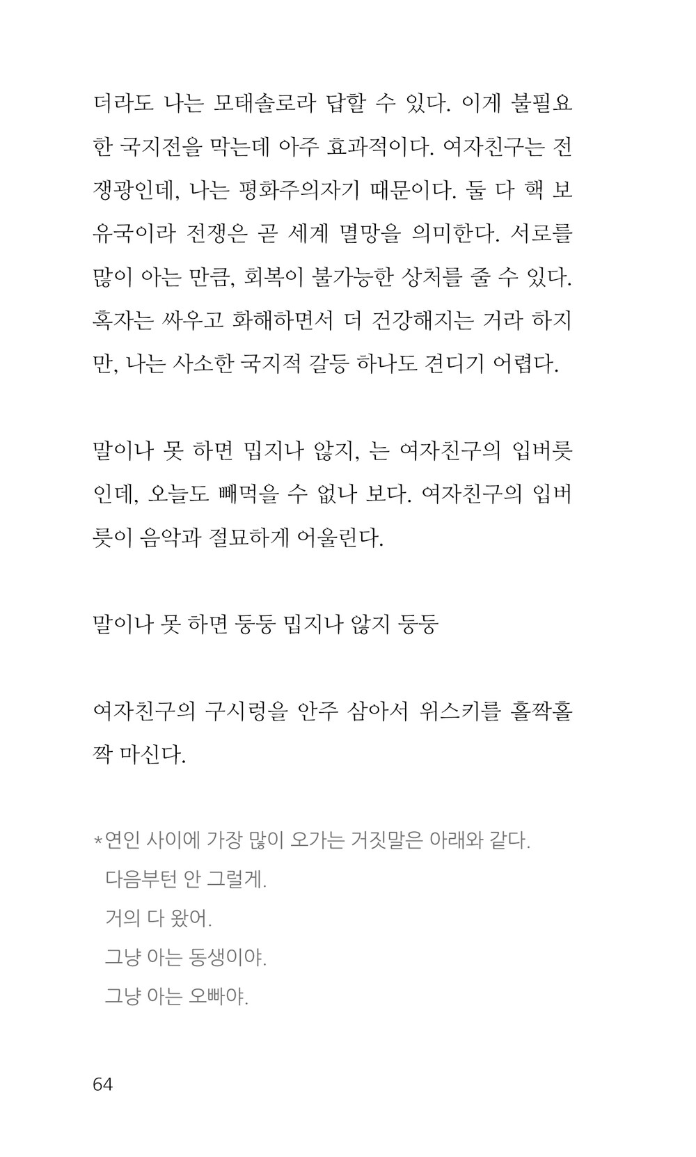 거짓말은 별처럼 스스로 빛나야 한다. '방금 한 말은 거짓말이야. 헤헤.'