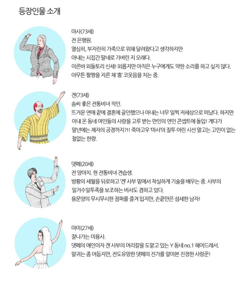 도쿄 스미다 구에 위치한 가상의 마을 Y. 두 개의 물길이 만나는 비옥한 땅으로 에도시대를 떠들썩하게 보낸 유서 깊은 곳이다. 그만큼 다양한 기억이 켜켜이 쌓여 있는 동네이기도 하다. 이곳에서 마사와 겐은 도쿄 대공습과 전쟁, 도쿄 올림픽, 버블 경제 등 폭풍 같은 현대사의 순간은 물론이고 연애와 결혼 등 꽃 같던 시절을 머리를 맞대고 함께 헤쳐 왔다. ‘무슨 일이 있어도 저 친구라면 어찌어찌해줄 거야’라는 절대적인 안도감! 달짜근하면서도 코끝 찡한 우정의 하모니가 잘 우린 한 잔의 차처럼 깊은 맛과 여운을 선사한다.