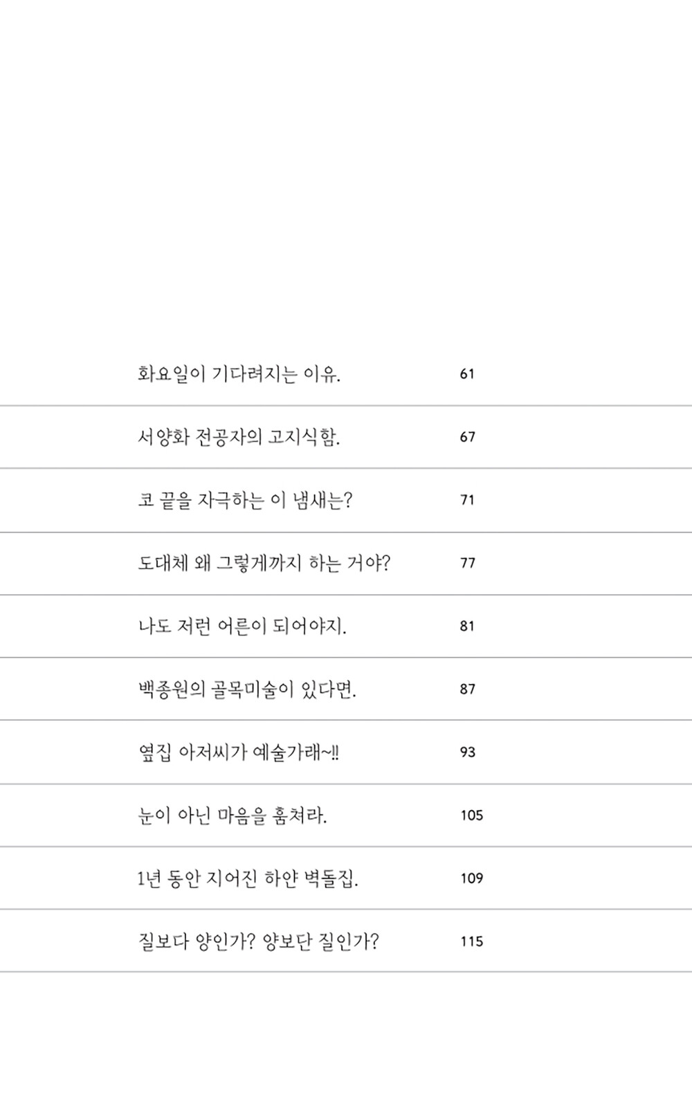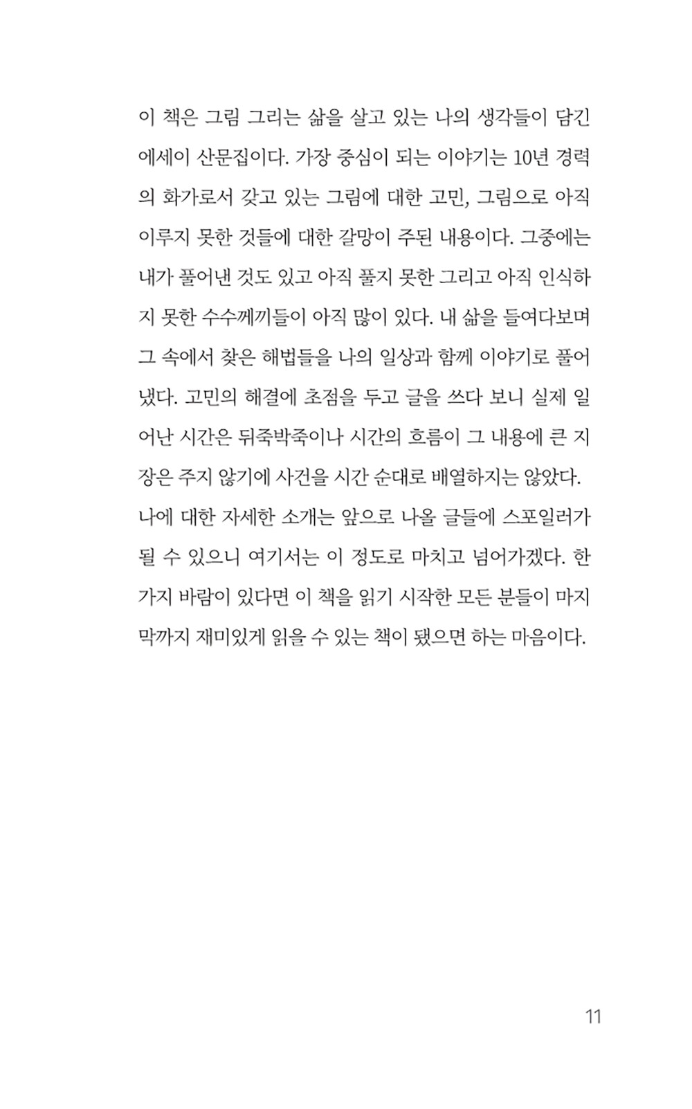 이 책은 그림 그리는 삶을 살고 있는 나의 생각들이 담긴 에세이 산문집이다.