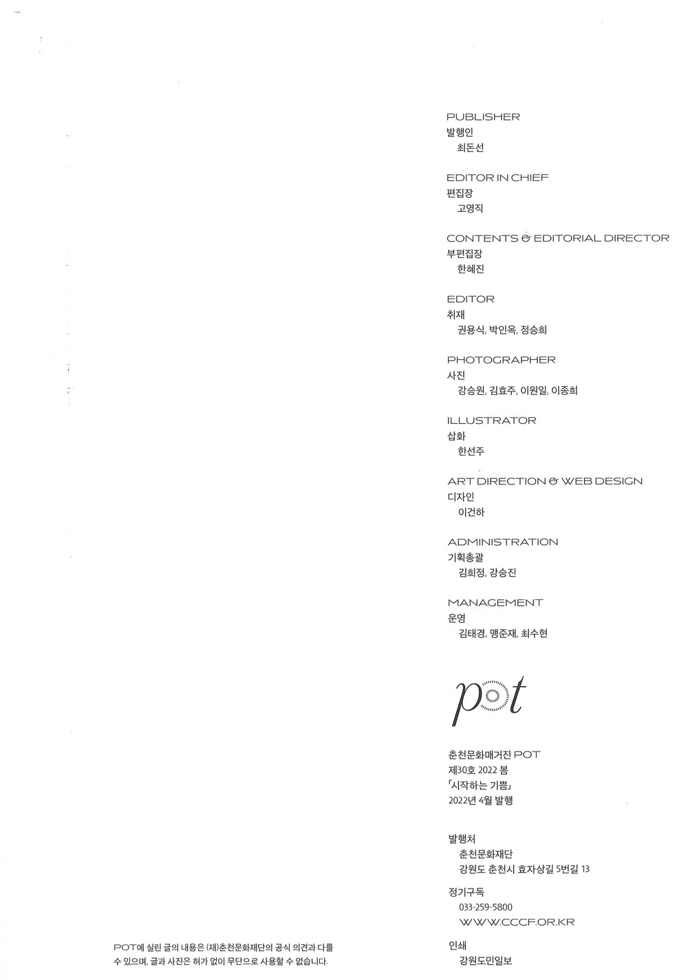 춘천문화매거진 POT 2022봄 시작하는 기쁨