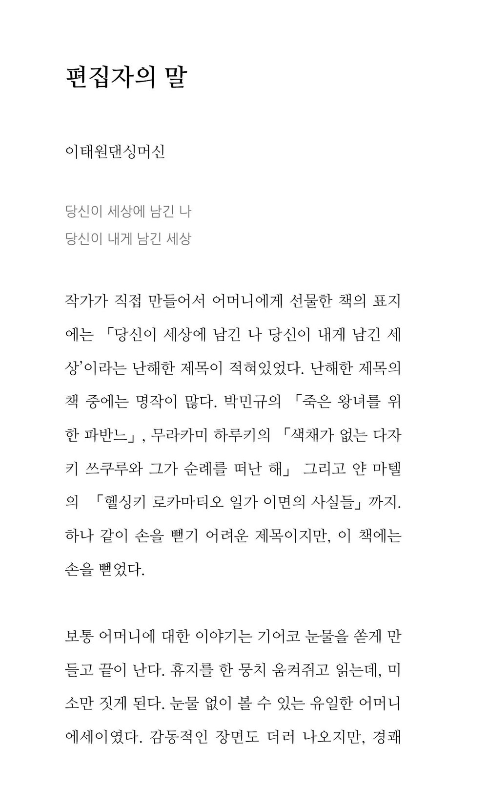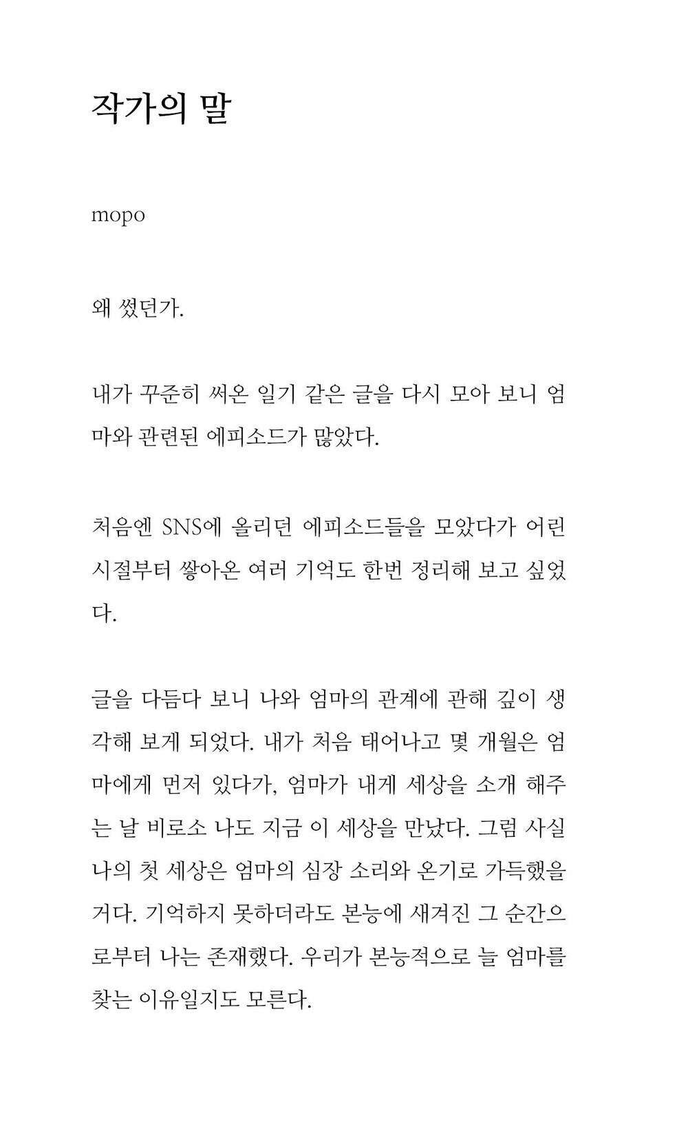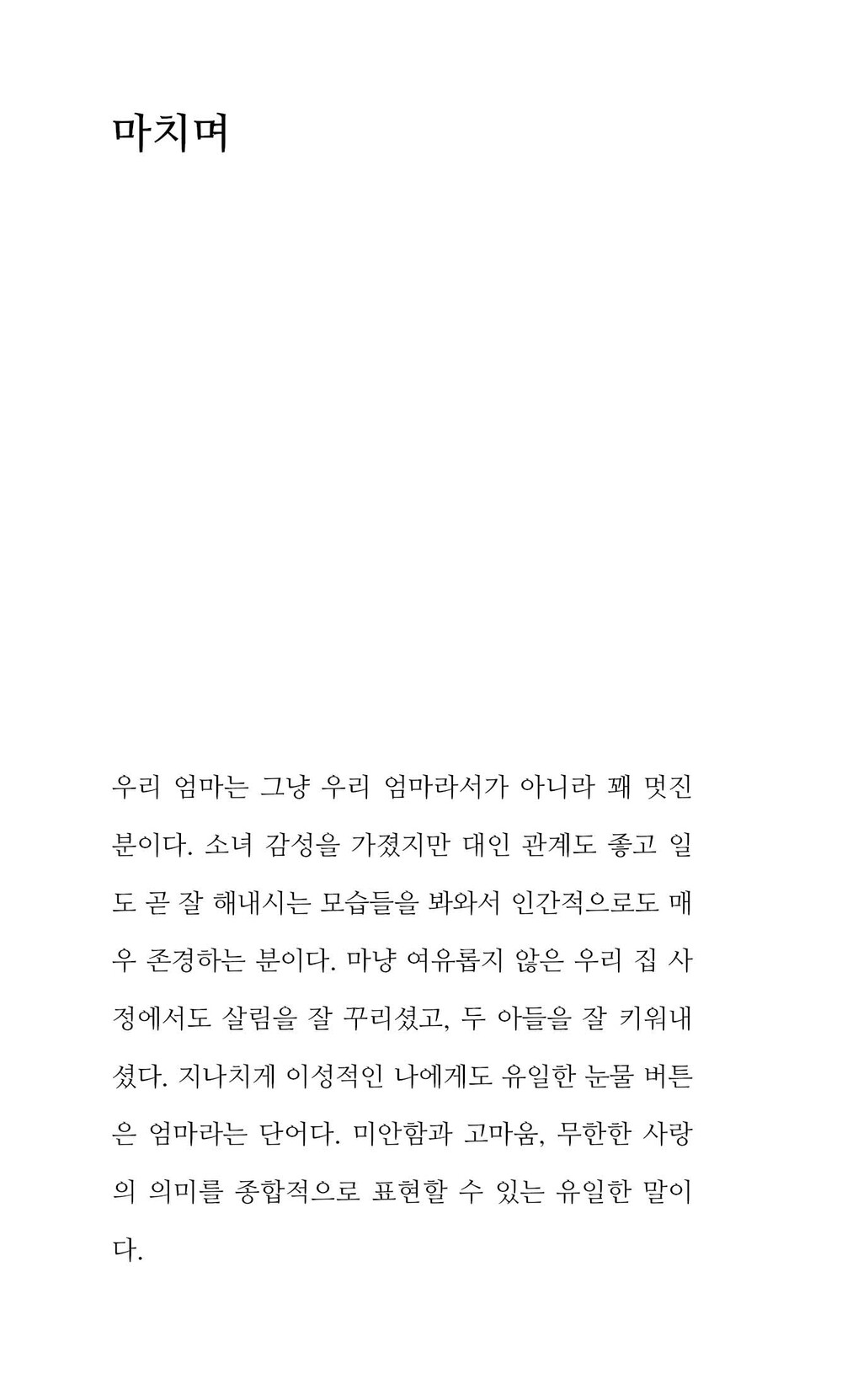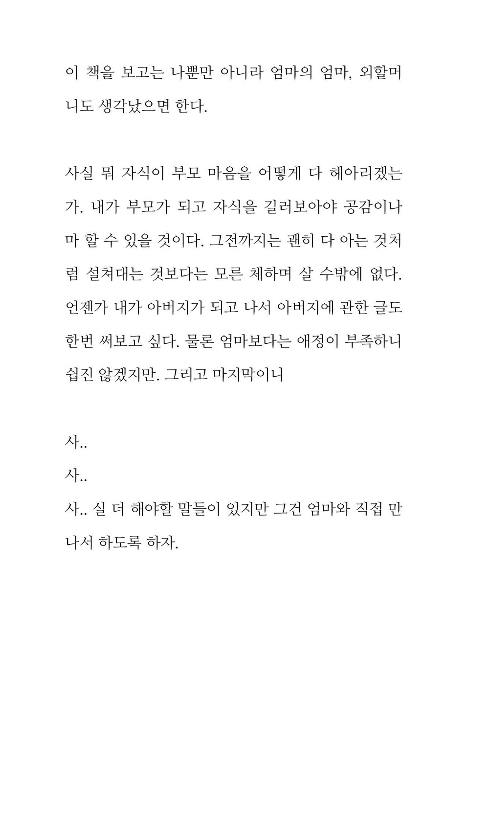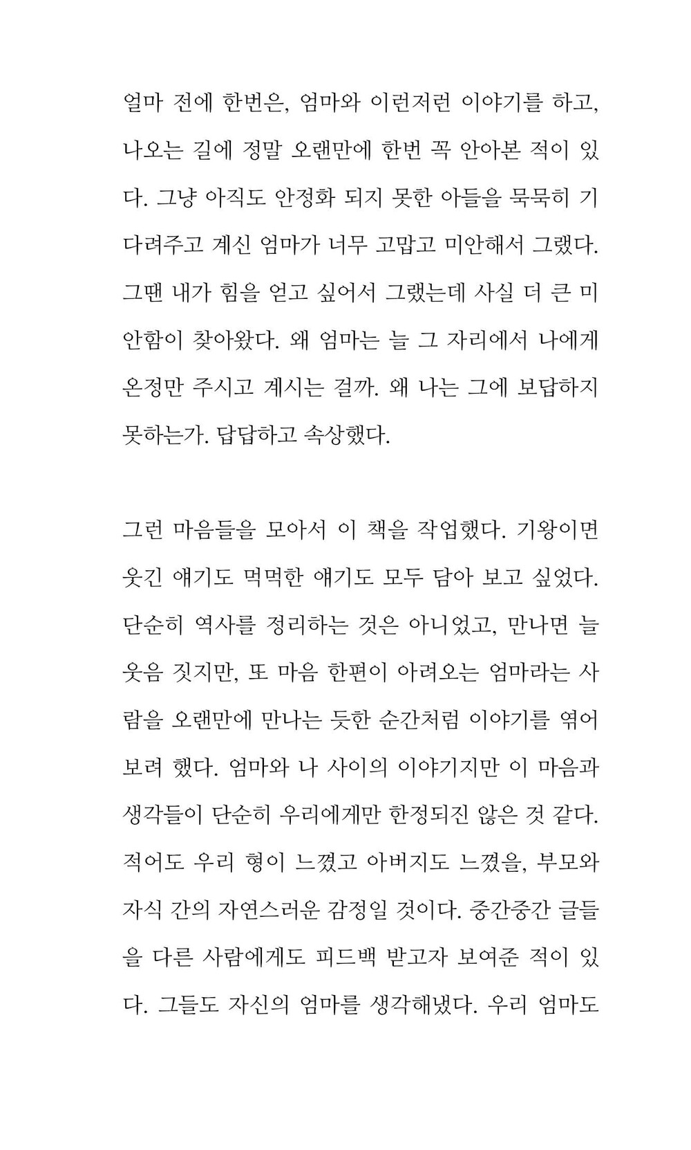 엄마에 관한 기억을 되짚으며 이제 한번 따뜻해지려다 그만 조절하지 못하고 불타버린 불효 에세이!