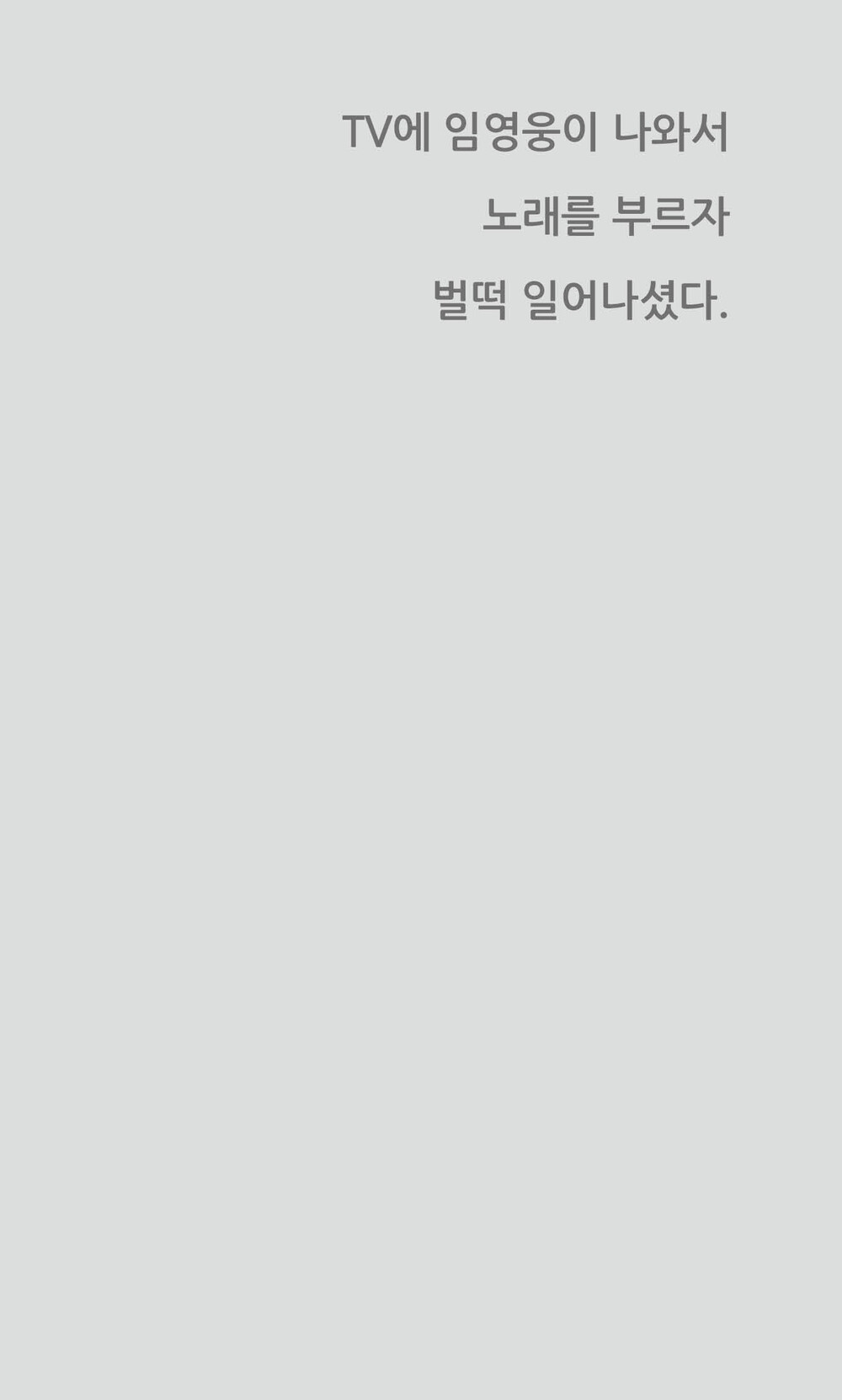 몇 번을 불러도 돌아누워 잠자던 엄마는 TV에 임영웅이 나와서 노래를 부르자 벌떡 일어나셨다. 30