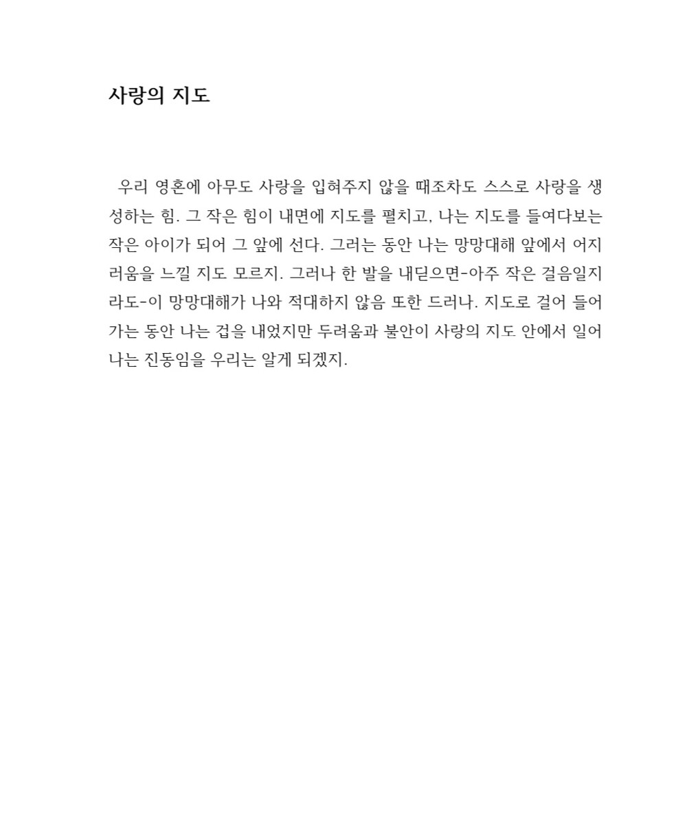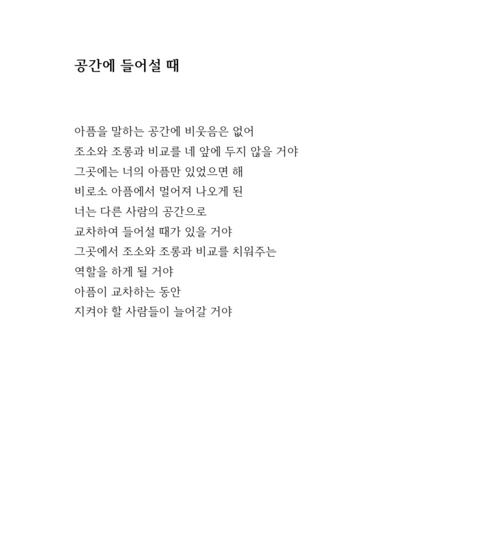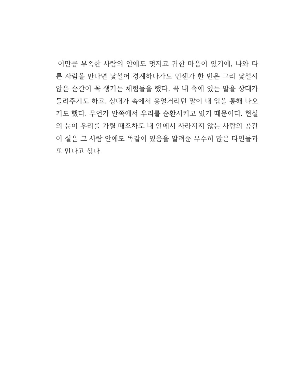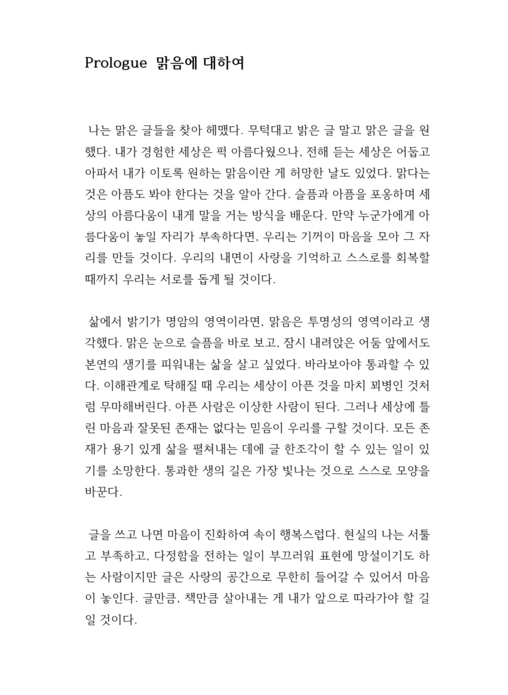 <순간을 대하는 태도>, <맑음에 대하여>, <파도 아래 선한 눈>, <당신의 글은 어떻게 시작되었나요?>
