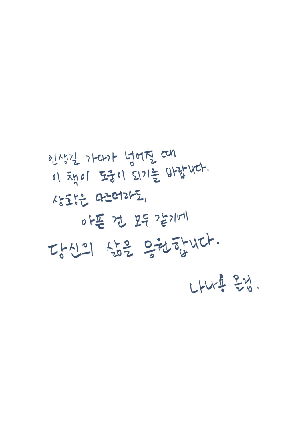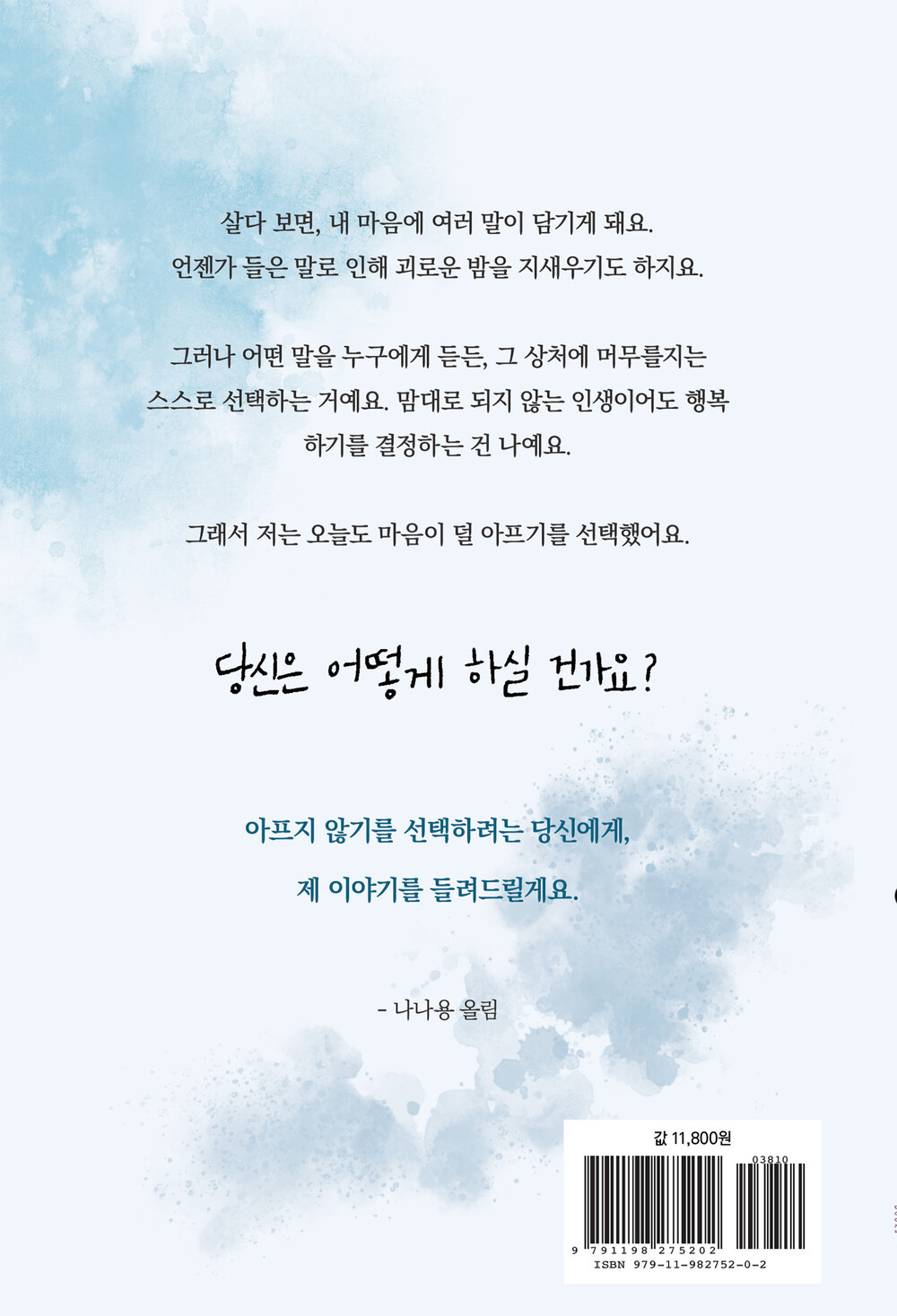 이 책에서는 저자가 겪었던 삶의 크고 작은 아픔과 감동을 풀어냄으로써, 상처를 어떻게 받아들일지는 온전히 본인의 선택이며 괴로워하는 것 또한 스스로가 택한 길이자 책임이라는 메시지를 전한다. 그리고 단순한 위로나 가르침을 주지는 않는다. 대신, 스스로 자신에게 맞는 인생의 해답을 찾도록 방향을 제시하며 아픔을 근본적으로 치유할 수 있도록 돕는다.