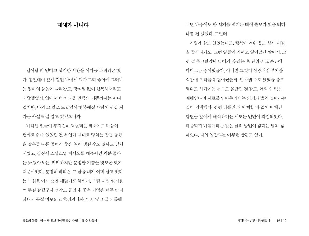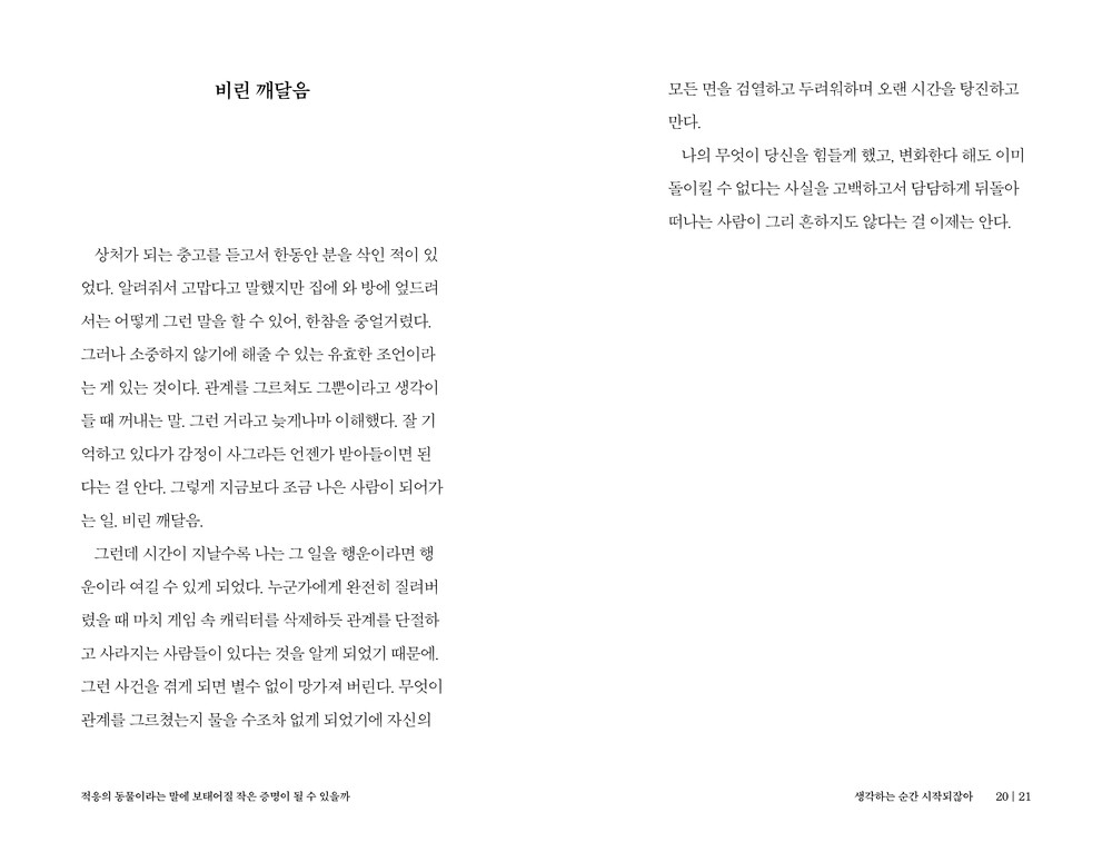 그러나 나는 여전히 자주 멈춰 섭니다. 지독하게 엎어지고, 지난날의 깨달음을 전부 부정하며 뒷걸음질 치기도 하고요.