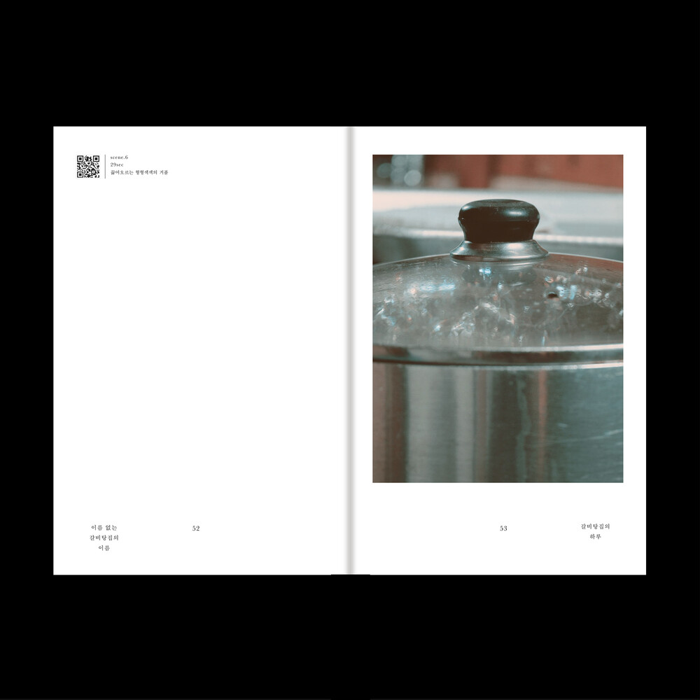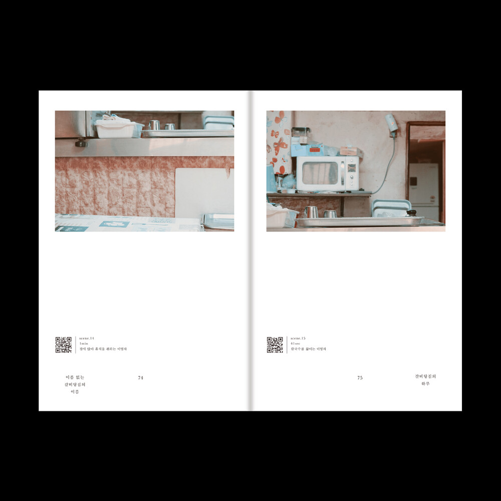 사진과 영상이 이어져 마치 한 편의 SCENE 처럼 느낄 수 있도록 각각의 제목과 러닝타임을 기입했습니다.
