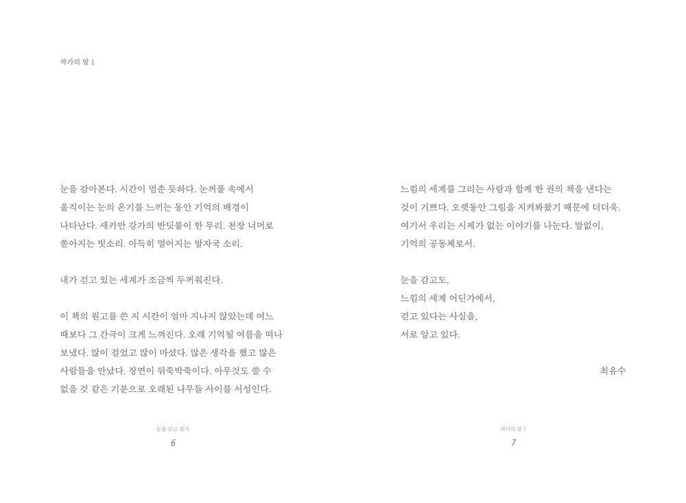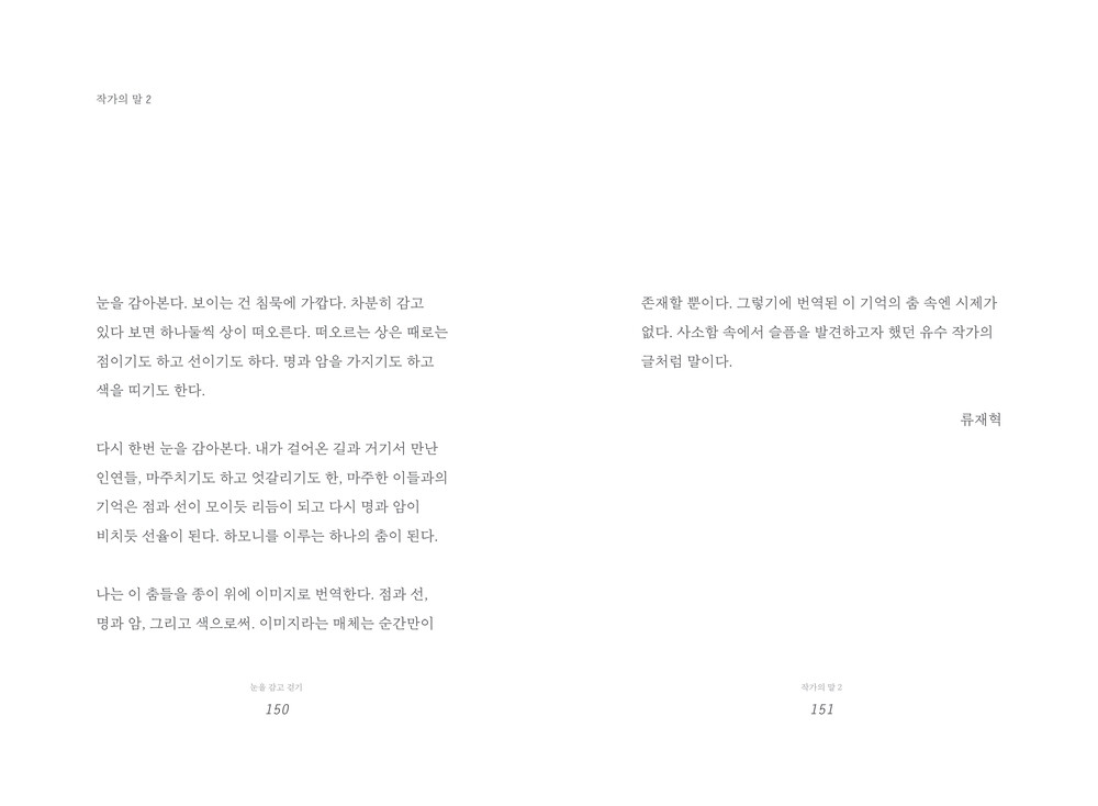 느낌의 세계를 그리는 사람과 함께 한 권의 책을 낸다는 것이 기쁘다. 오랫동안 그림을 지켜봐왔기 때문에 더더욱.