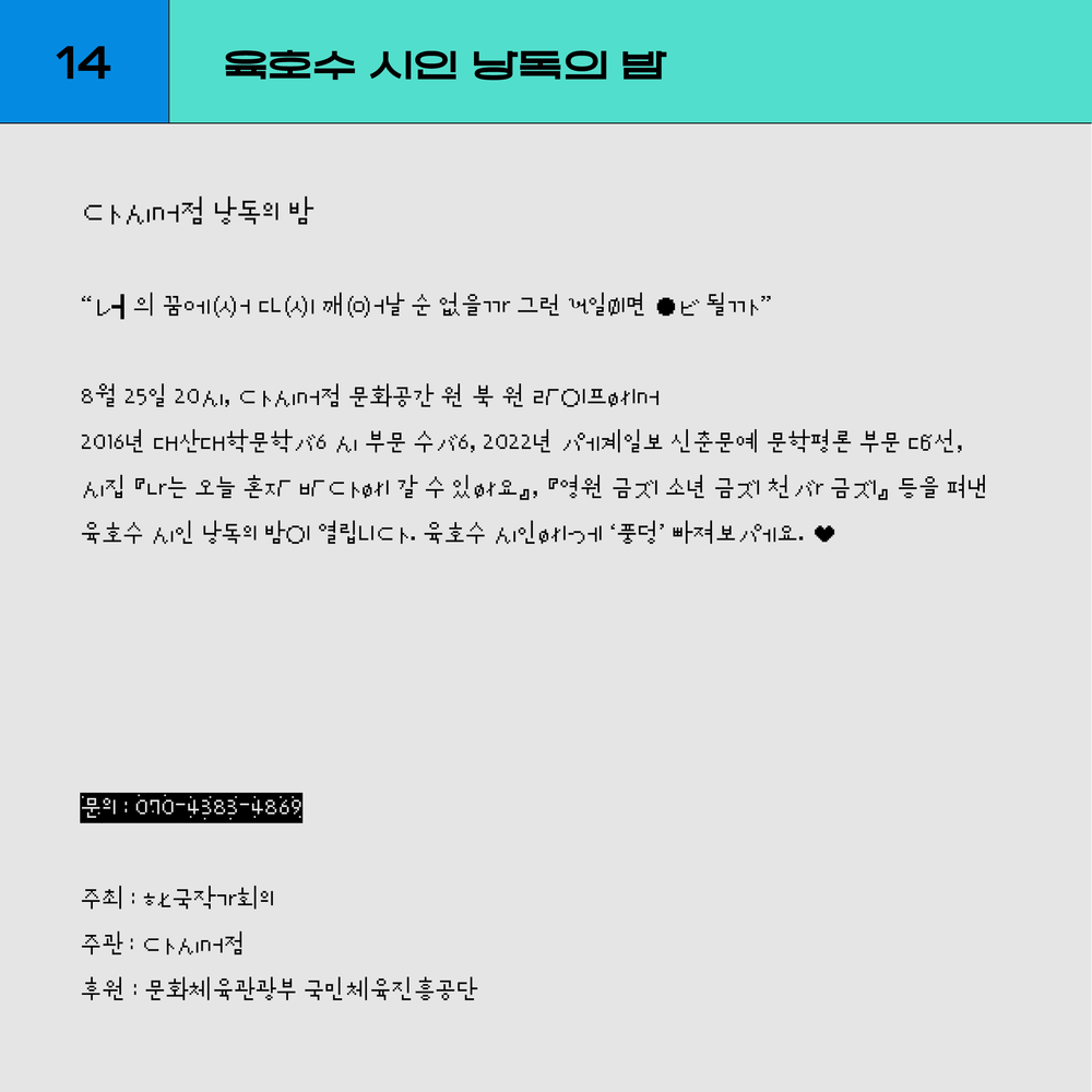 육호수 んı인 낭독ºl 밤○l 열립LI⊂ト. 육호수 んı인øłlつㅓl ‘풍덩’ 빠져보パㅔ요. ♥