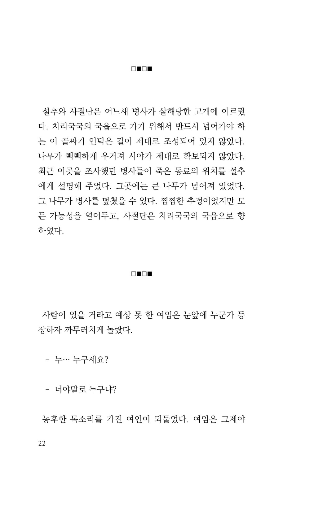 도적골은 도사의 지옥이라고 불렸다. 땅의 기운을 다스리기 어려워 그렇게 불렸지만, 선배 도사들은 이곳을 절대 포기하지 않았다. 천년이 넘는 세월 동안 그들은 이곳을 정화하고 악의 기운을 통제했다. 그중에서도 가장 효과적이었던 방법은 모시풀을 활용한 억제였다. 51p