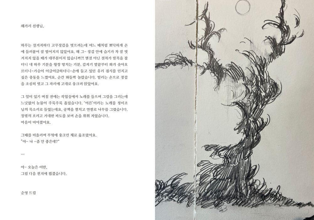 실제와 허구가 뒤섞인 그림을 그리고 글을 쓰고 무엇을 만드는 작업은 제가 세상과 소통하는 언어의 일종입니다.