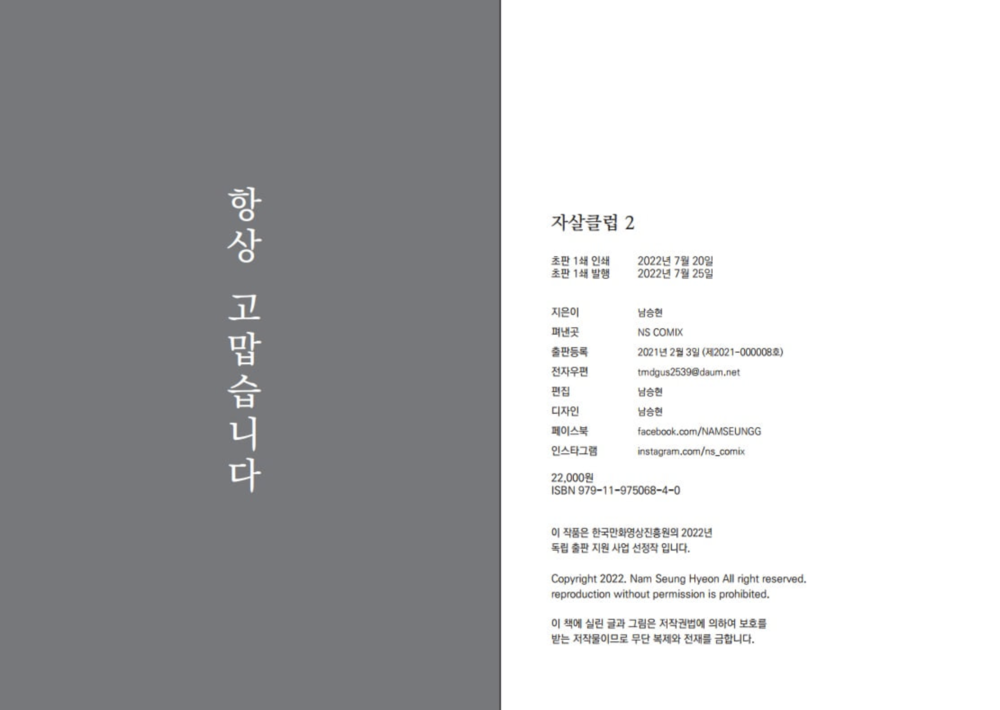 2022년 한국만화영상진흥원 독립출판지원사업 “자살클럽2” 선정