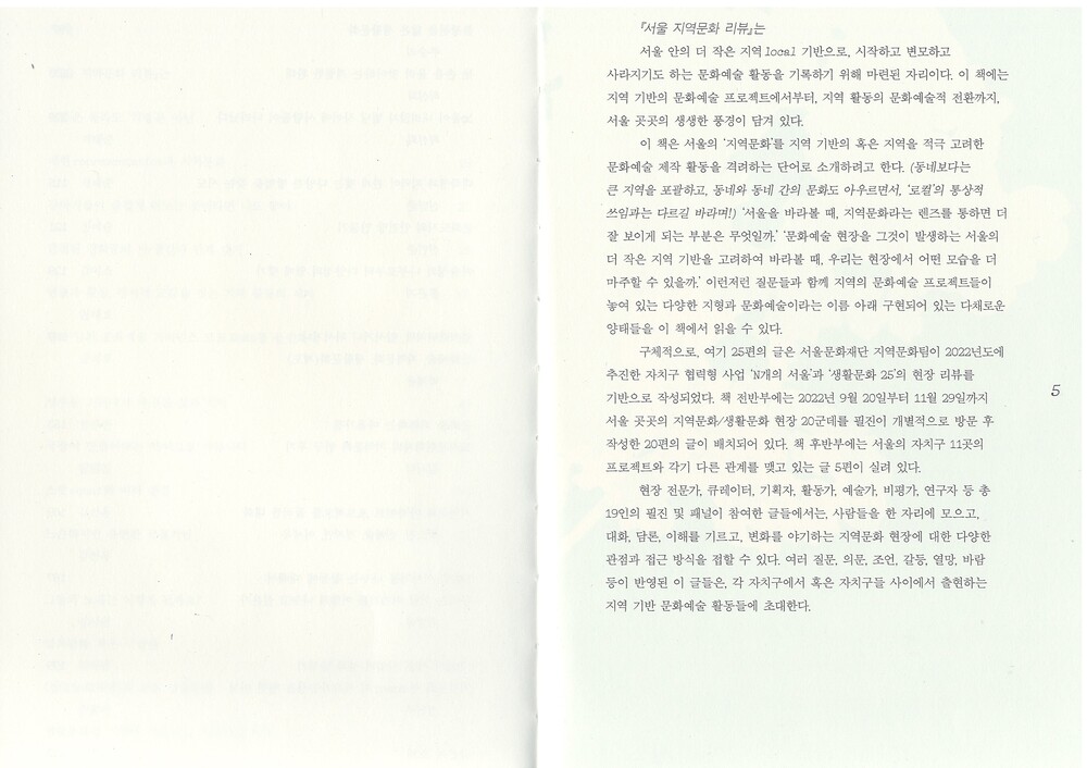 [서울 지역문화 리뷰]는 서울문화재단 지역문화팀이 2022년도에 추진한