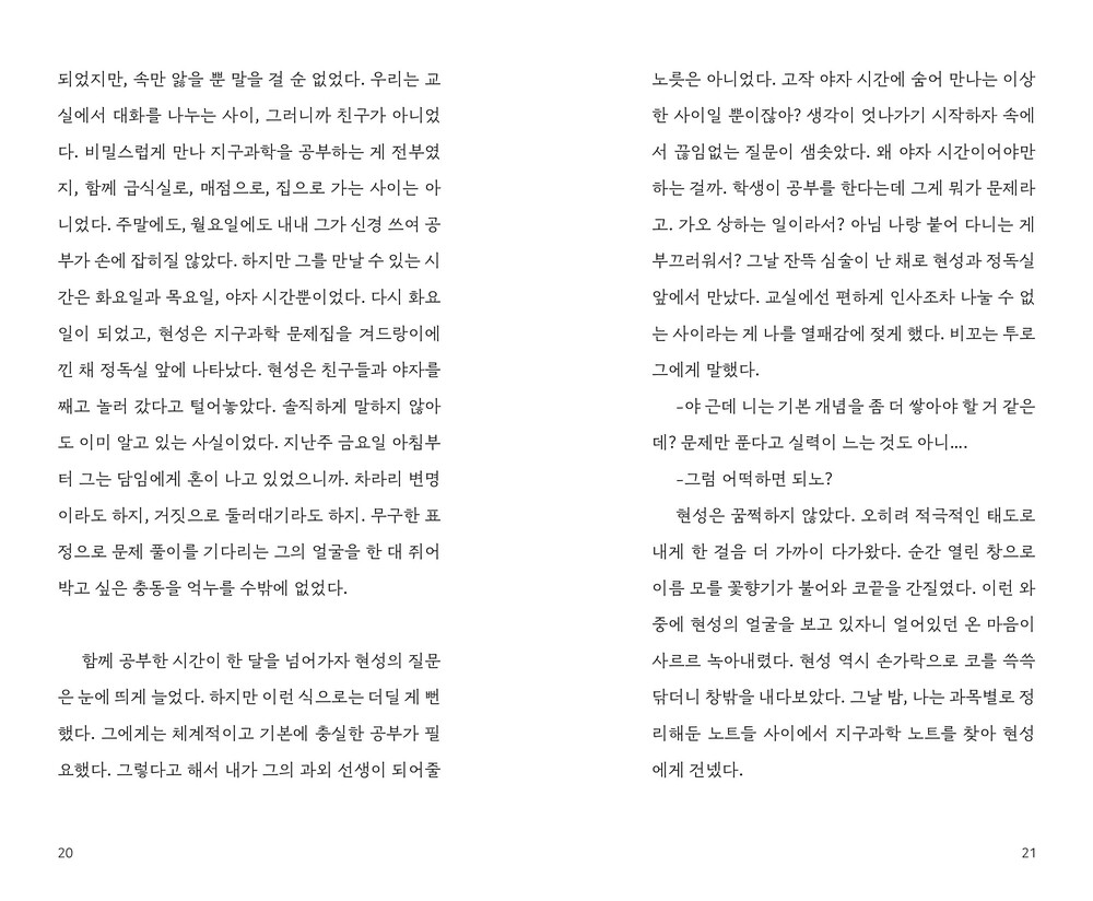 그날 밤, 나는 과목별로 정리해둔 노트들 사이에서 지구과학 노트를 찾아 현성에게 건넸다