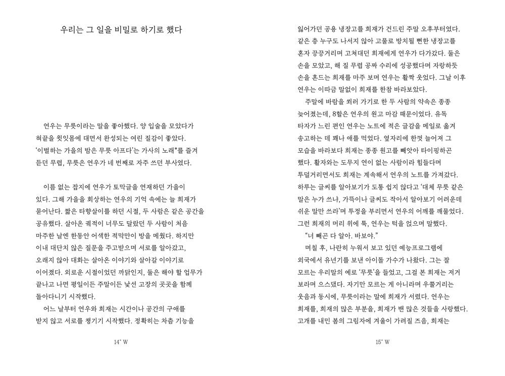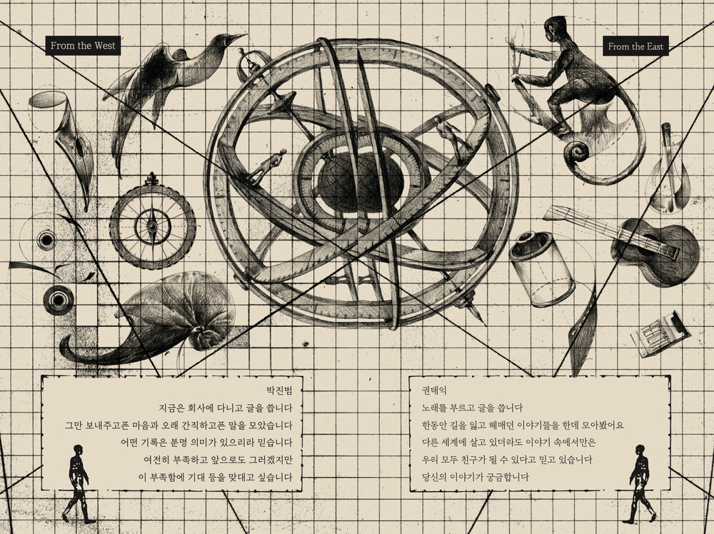 『Antipode : 우리가 충분히 오래 걸어간다면』은 서로 다른 지점에서 같은 문장을 바라보며 써 내린 서른 여덟 편의 이야기를 모은 책입니다.