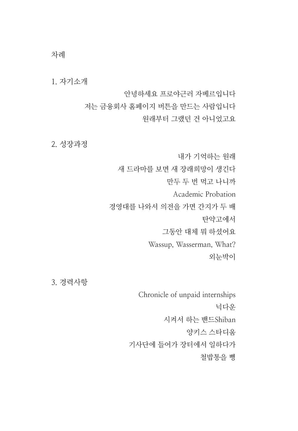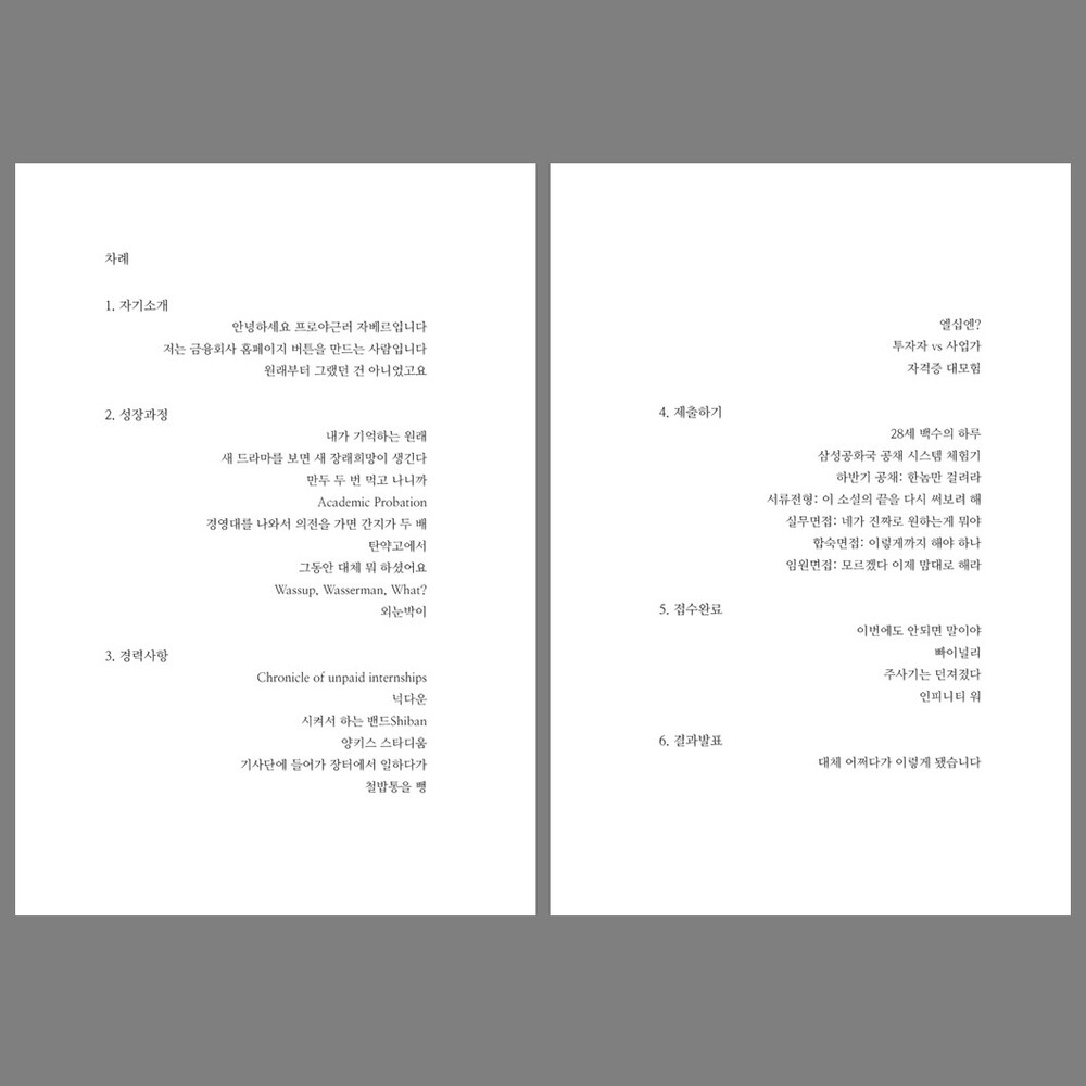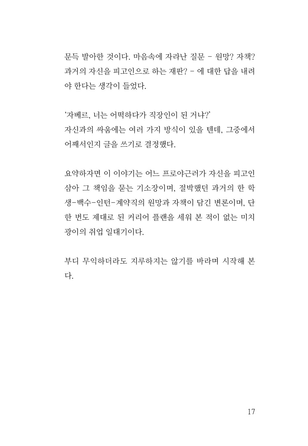 학생, 인턴, 계약직, 백수, 취준생으로 겪은 지극히 개인적인 경험을 토대로, 삶의 여러 장면을 되돌아보고 복기하고 다듬은 이야기입니다.