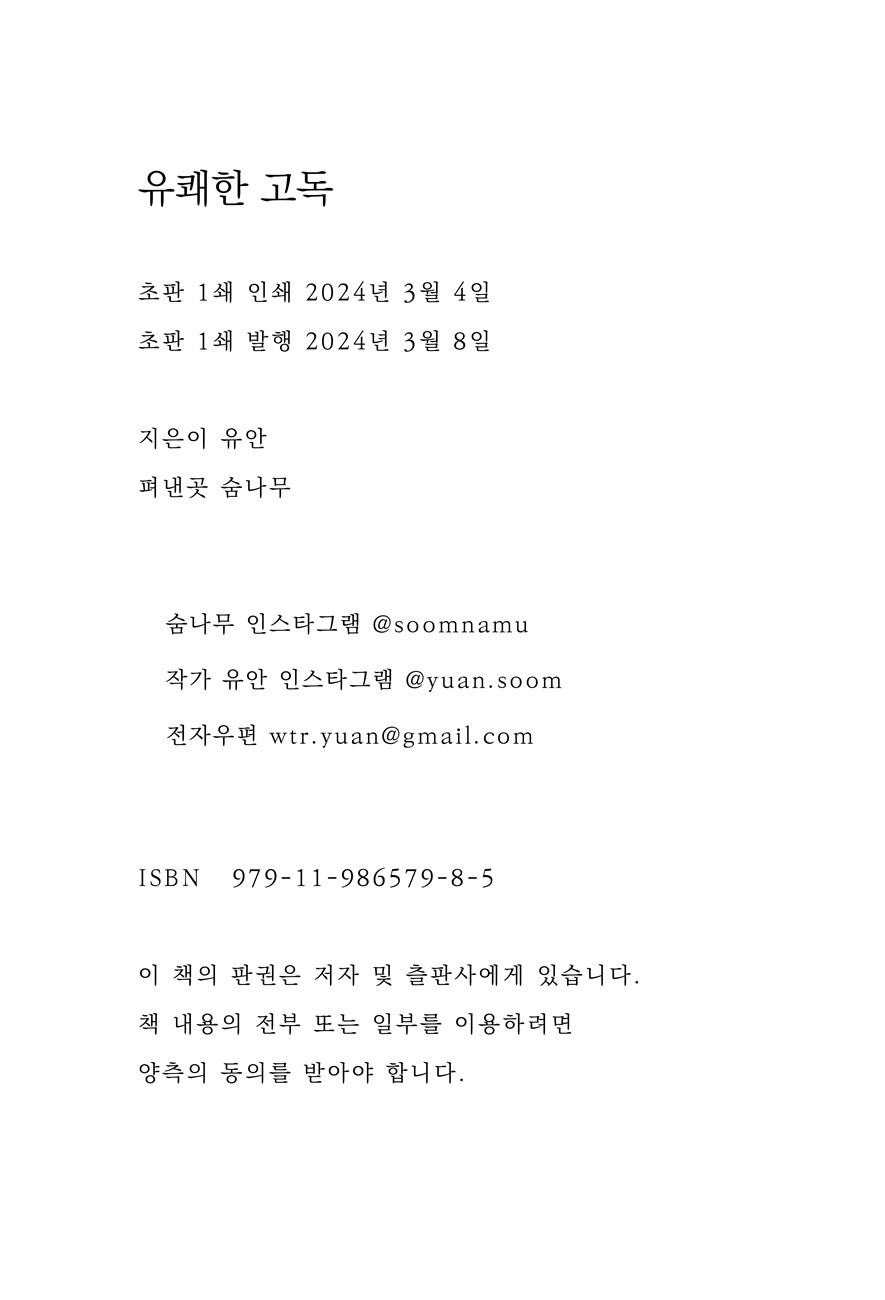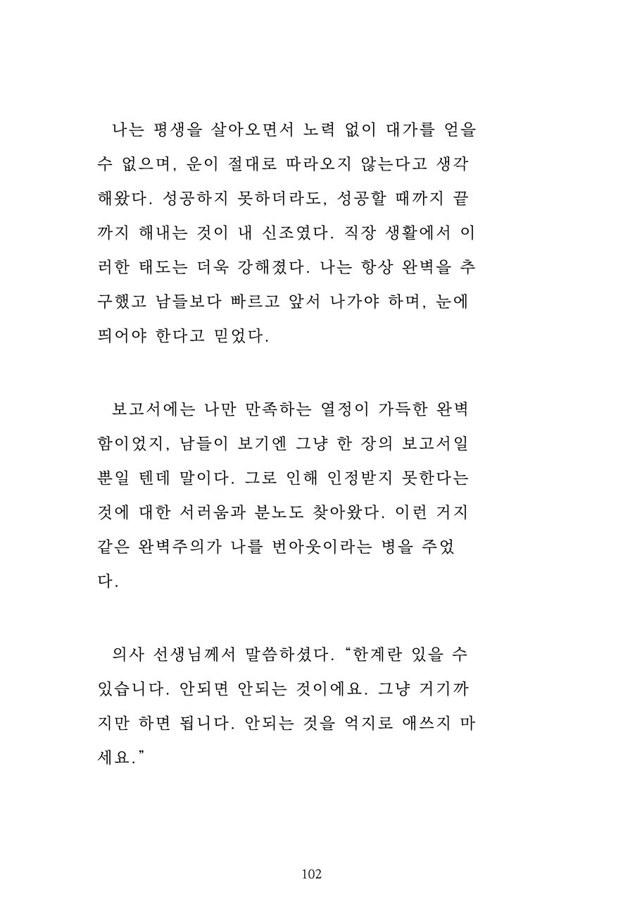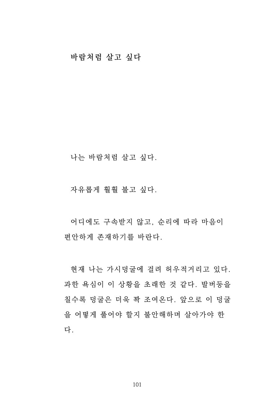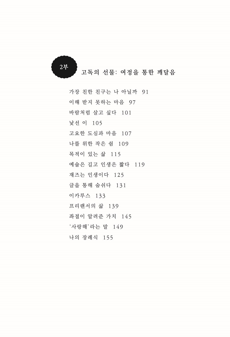 혼자 있는 시간을 오래 가지면서 많은 생각에 잠긴다. 앞만 보고 바쁘게 살다 보니 몰랐던 내가 마음의 병을 앓으며 점점 고독해지고, 나에게 계속 질문을 던진다.
