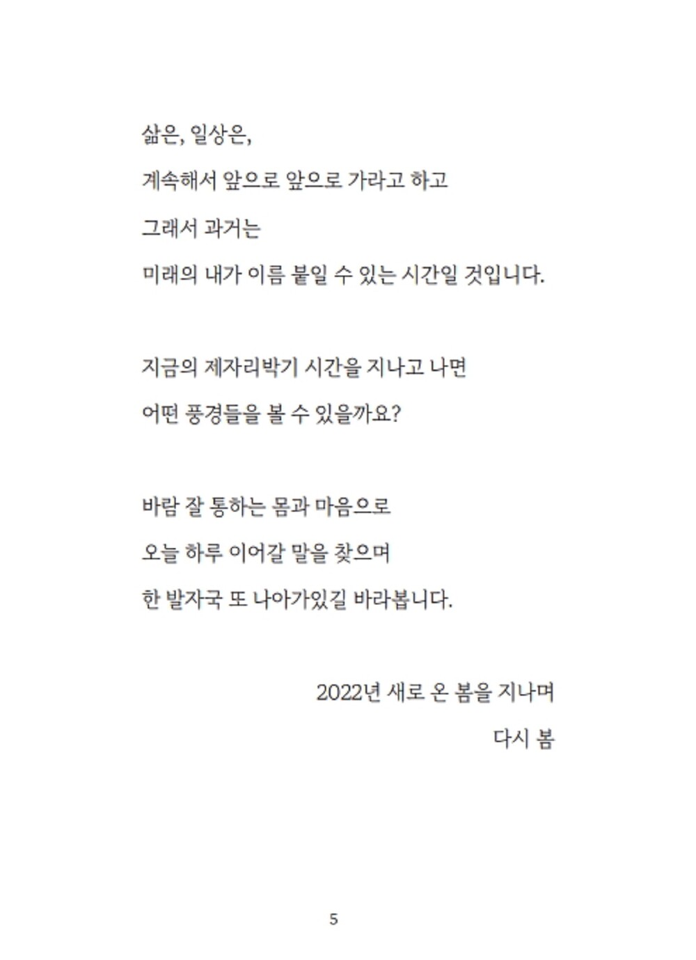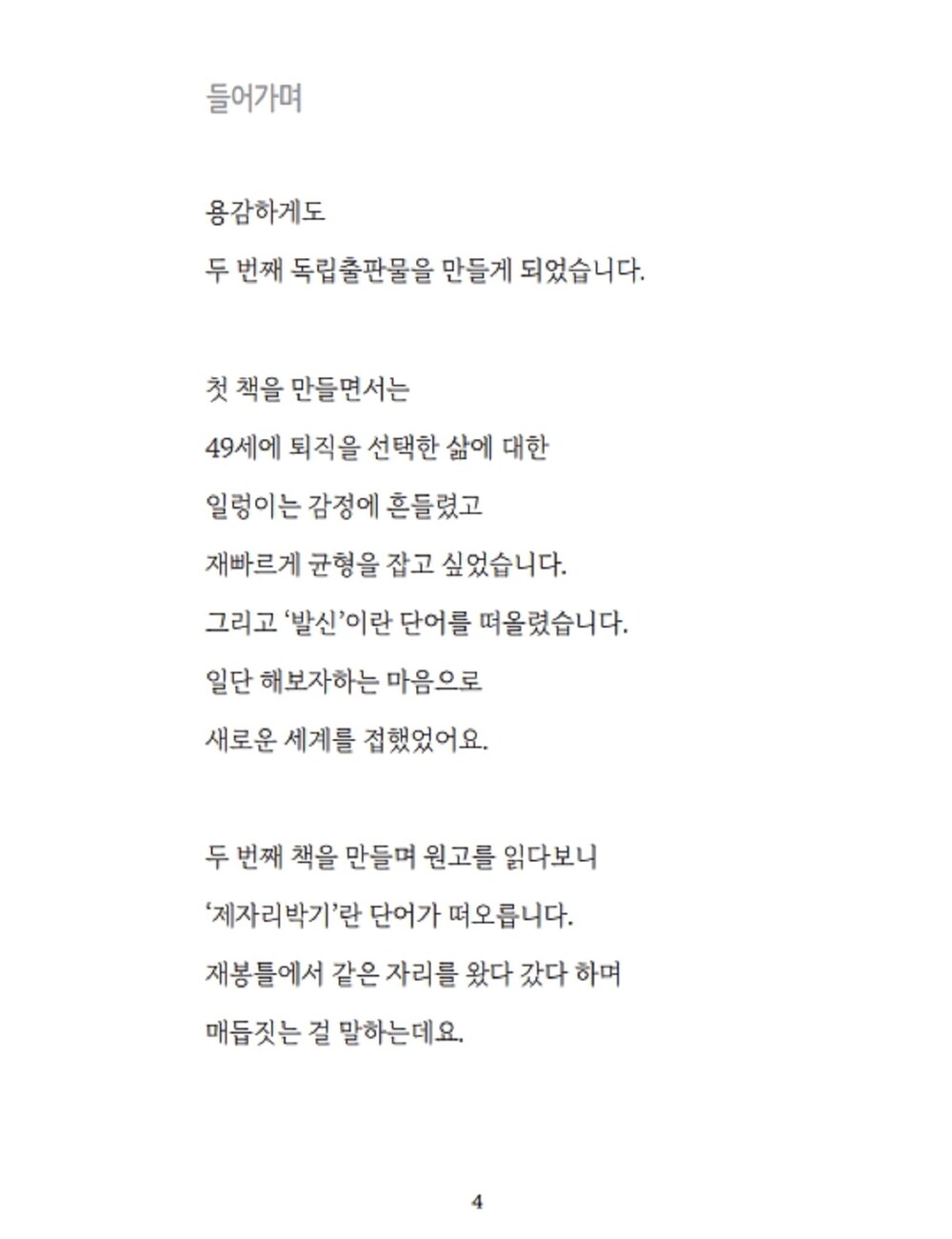 두 번째 책을 만들며 원고를 읽다보니 '제자리박기'란 단어가 떠오릅니다.
