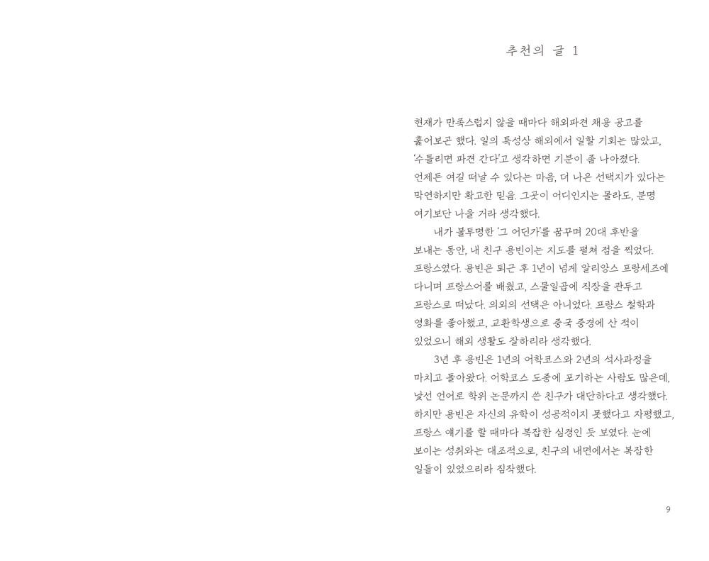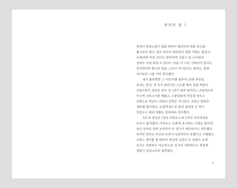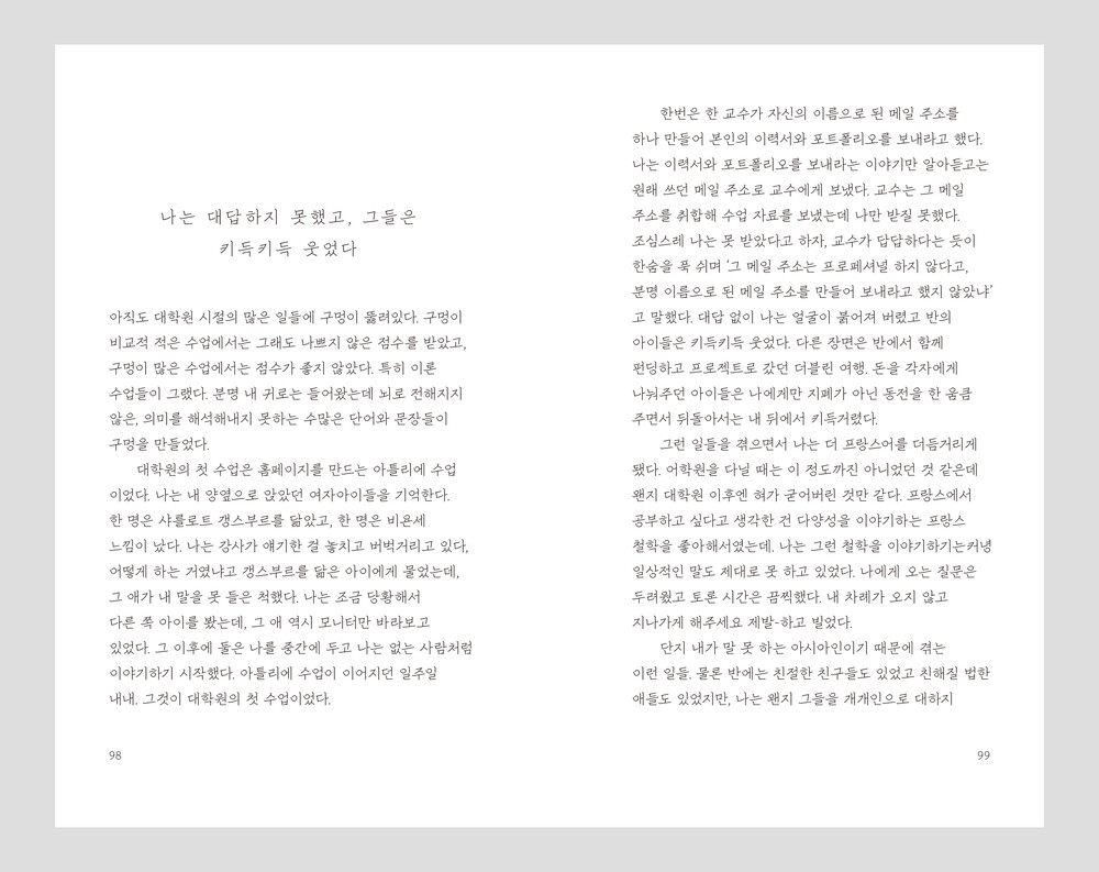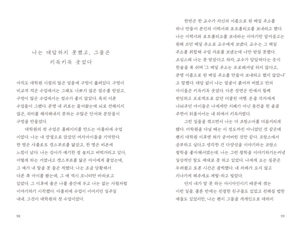 3년간의 석사 과정을 마치고 돌아온 저자는 자신의 지난날을 어쩐지 ‘실패한 유학기’라고 스스로 말합니다.