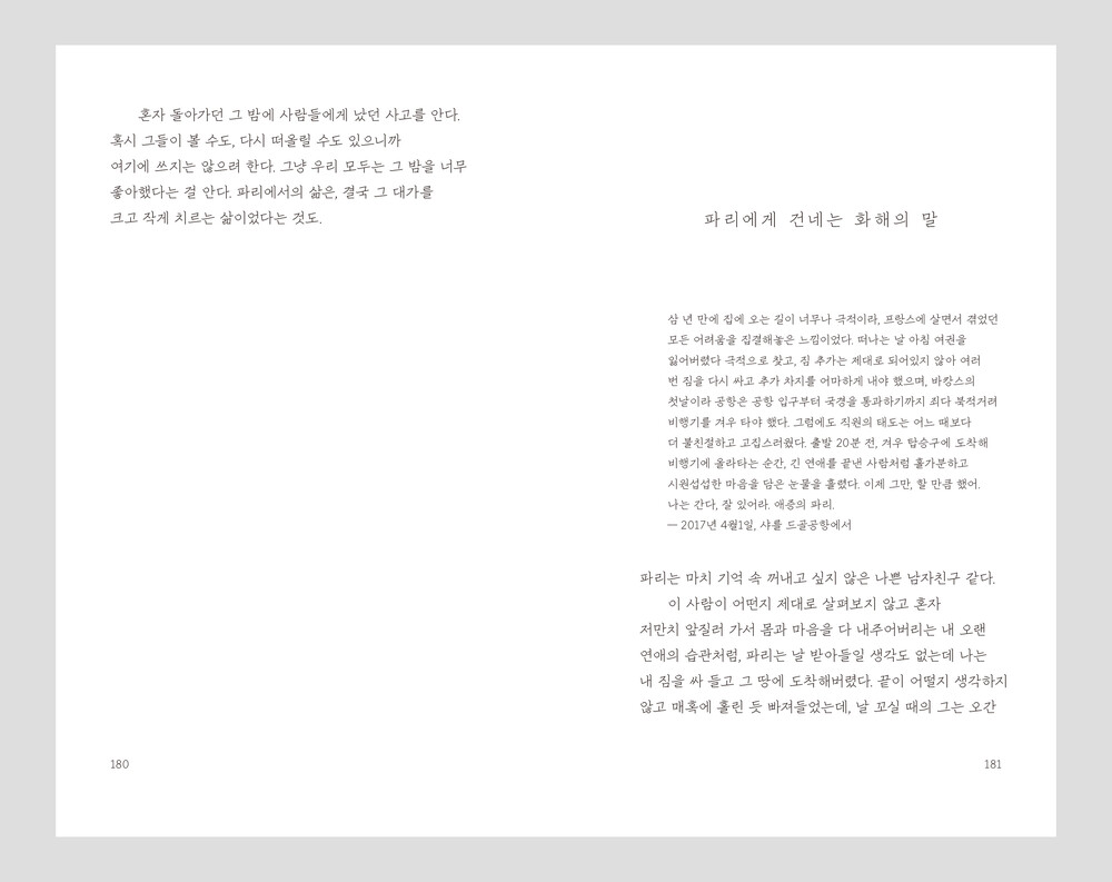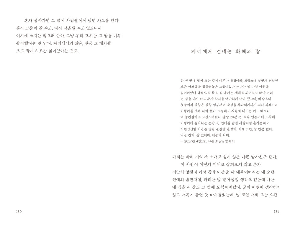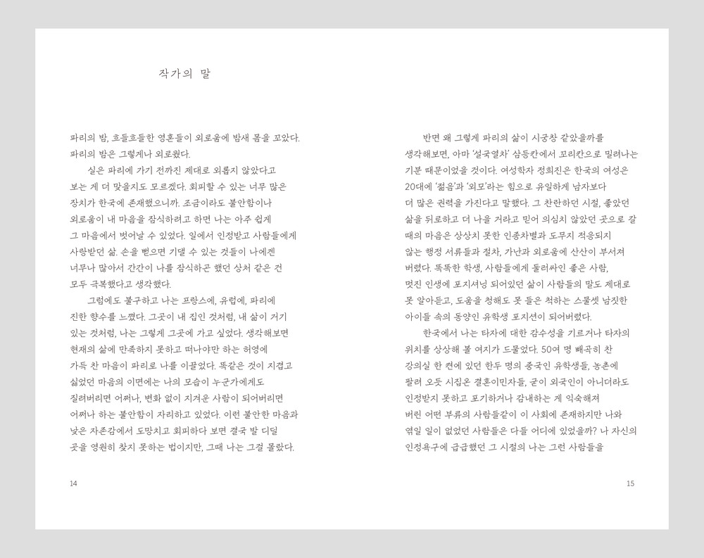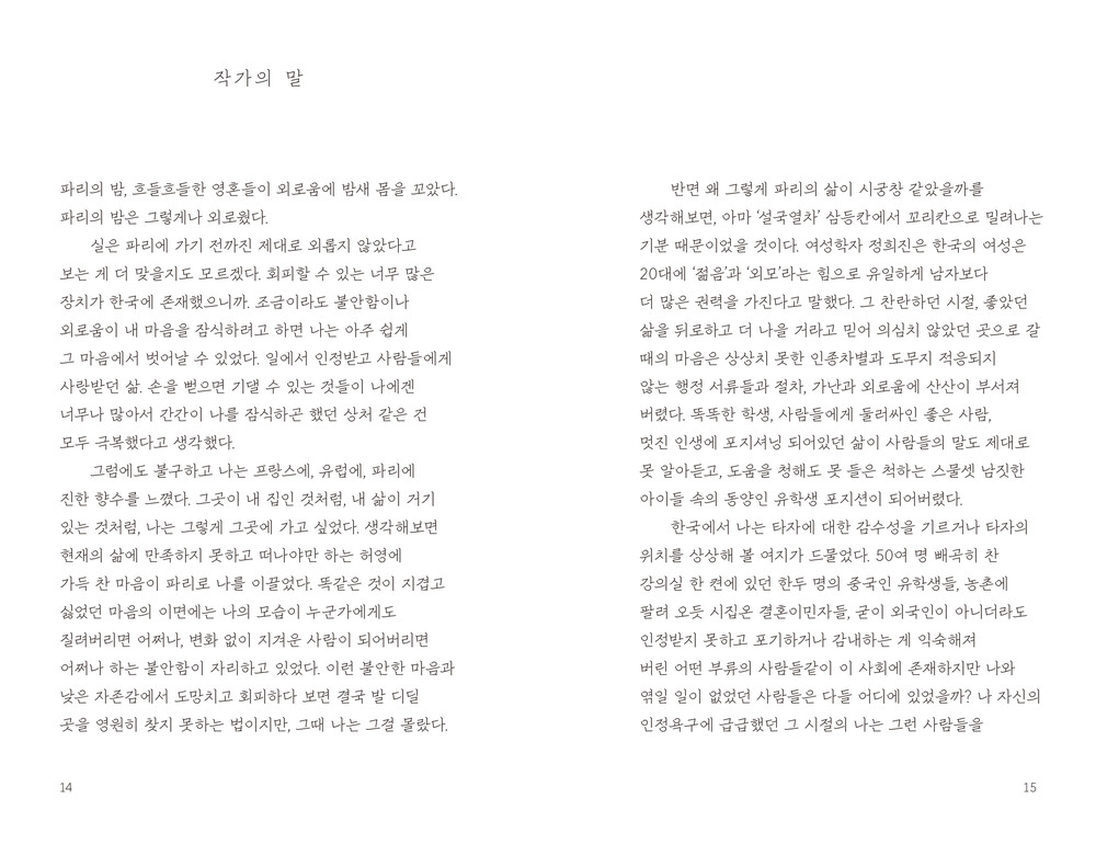 무엇이 파리로 자신을 이끌었는지, 분명 녹록지 않은 삶이었는데 왜 서점의 책들은 낭만만을 이야기하는지,