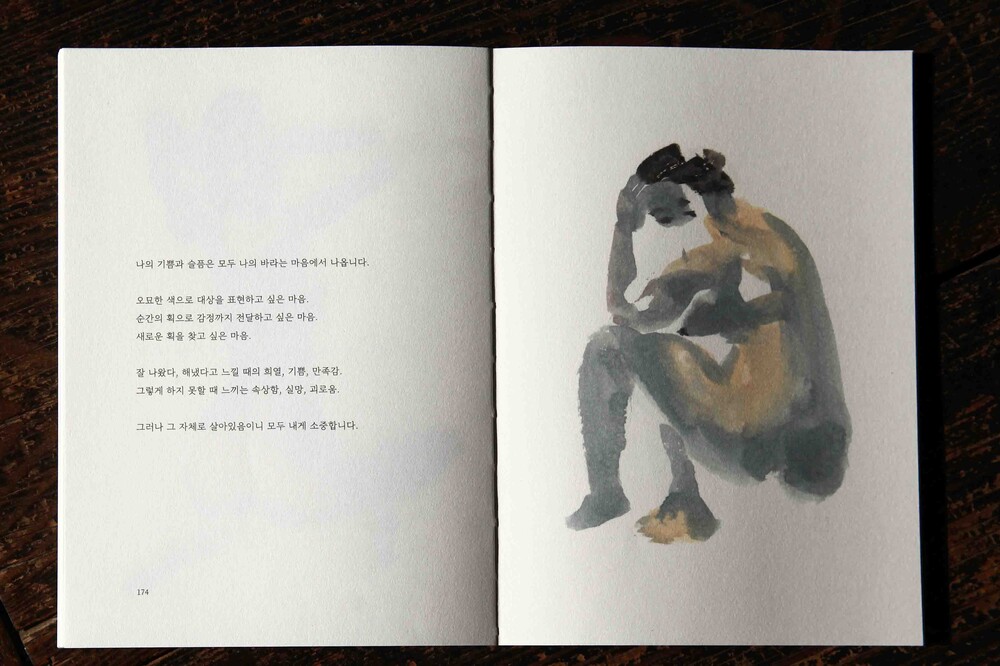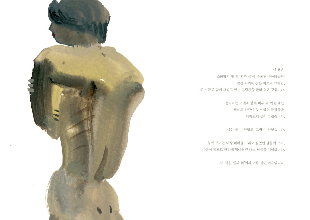 수채화 물감을 사용해 일필로 그린 누드 크로키들과 함께 생각해 온 그림과 삶에 대한 단상들을 모아 엮은 책입니다.