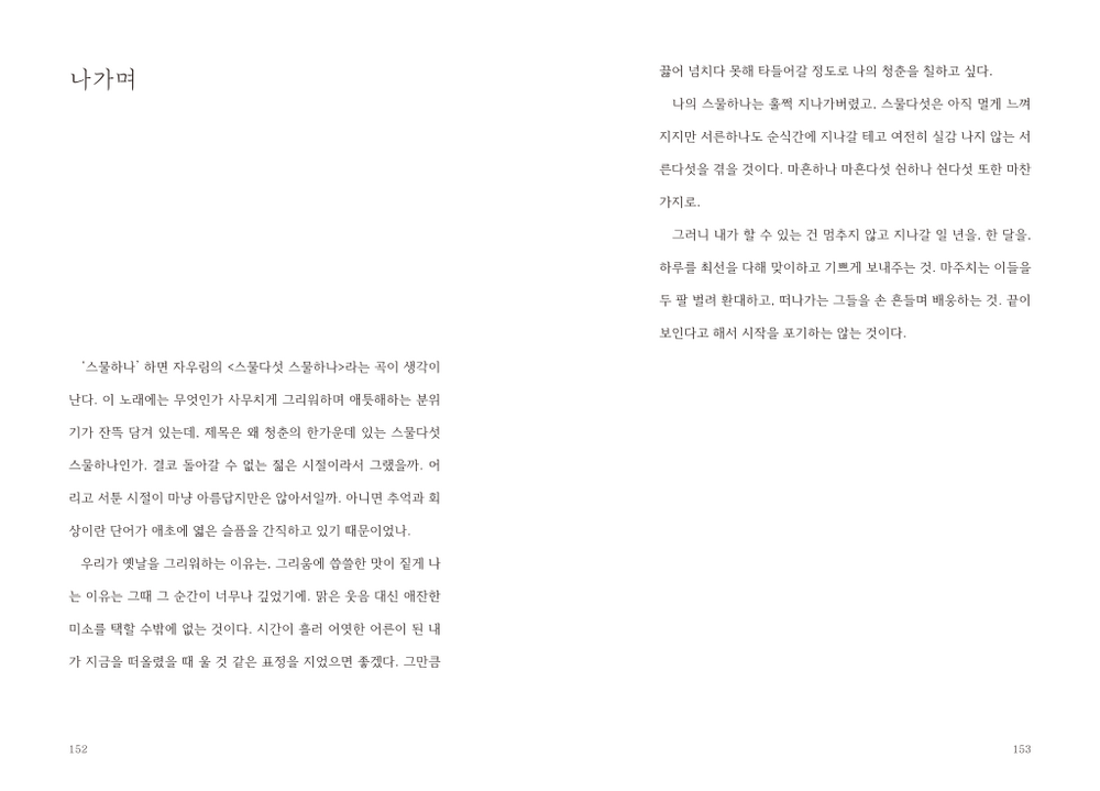 그중 19살, 20살 이야기를 담아낸 <이런, 열아홉이 되었습니다> <아무렴 어때요, 내가 선택한 하루인걸요> 를 독립 출판했다.