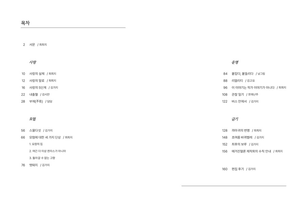 외부필진(김고요, 김시안, 낮그림, 담담, 쪼매난주)들의 참여로 풍성하고 다양한 작품을 실었습니다.