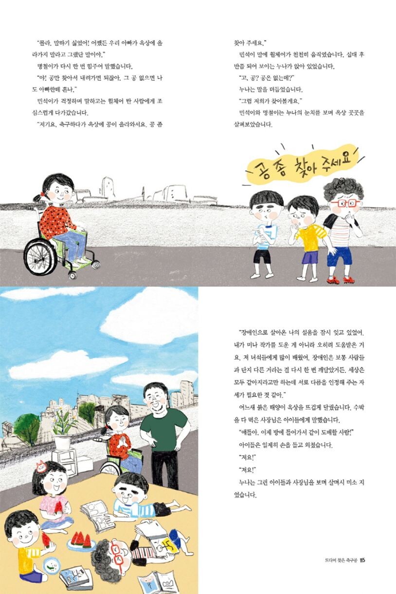 사람은 누군가의 도움 없이는 혼자 살아가기 어려운 존재입니다. 장애인이든 비장애인이든 마찬가지입니다. 어린이들이 이 책에 나오는 미나 누나와 아이들처럼 장애인 이웃과 서로 도우며 이해하고 함께 살아가는 세상이 되기를 바랍니다.
