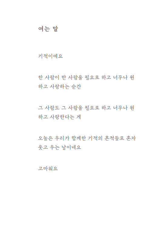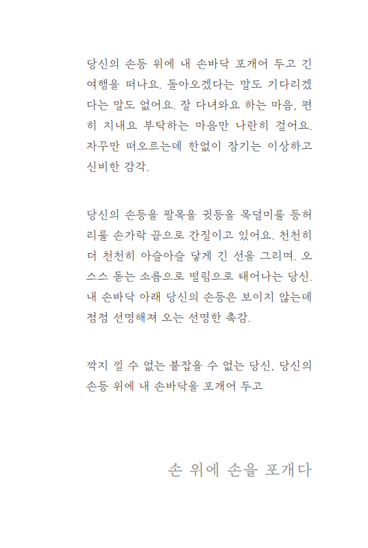 돌아보면 제가 하고 싶은, 이상적인 사랑을 썼구나 싶습니다.