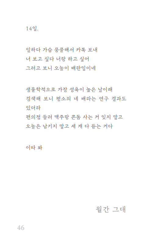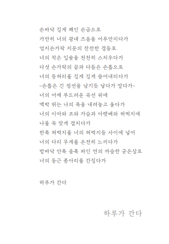 가득한 웃음과 뜨거운 몸만큼 진한 여운과 늦은 깨달음 또한 사랑임을 배웁니다.