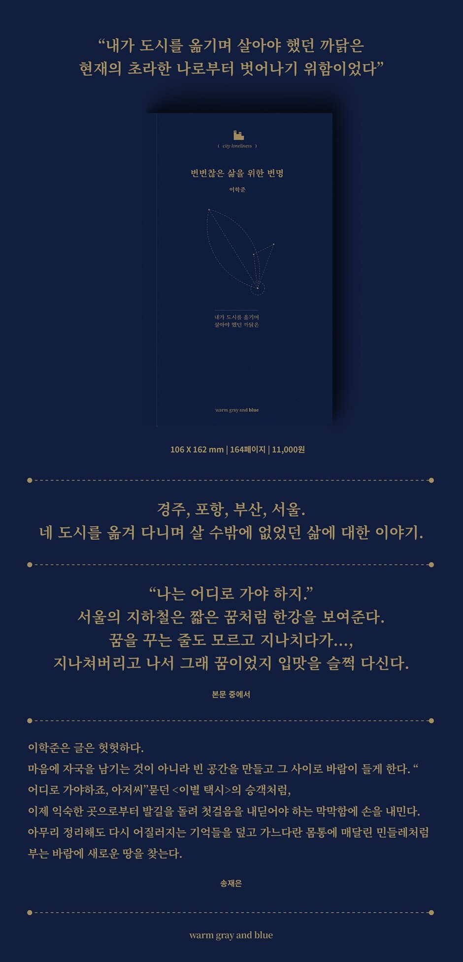 변변찮은 삶을 위한 변명 / 이학준 / 웜그레이앤블루