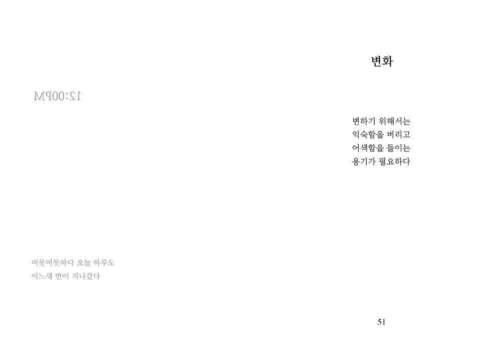 어떤 글엔 공감하고 어떤 글엔 불편하다면 그건 우리의 시간이 잠시 맞닿았거나 어긋나있기 때문이겠죠.