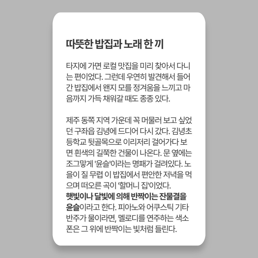 카드에 한 장씩 남기는 나만의 음악 감상 리추얼