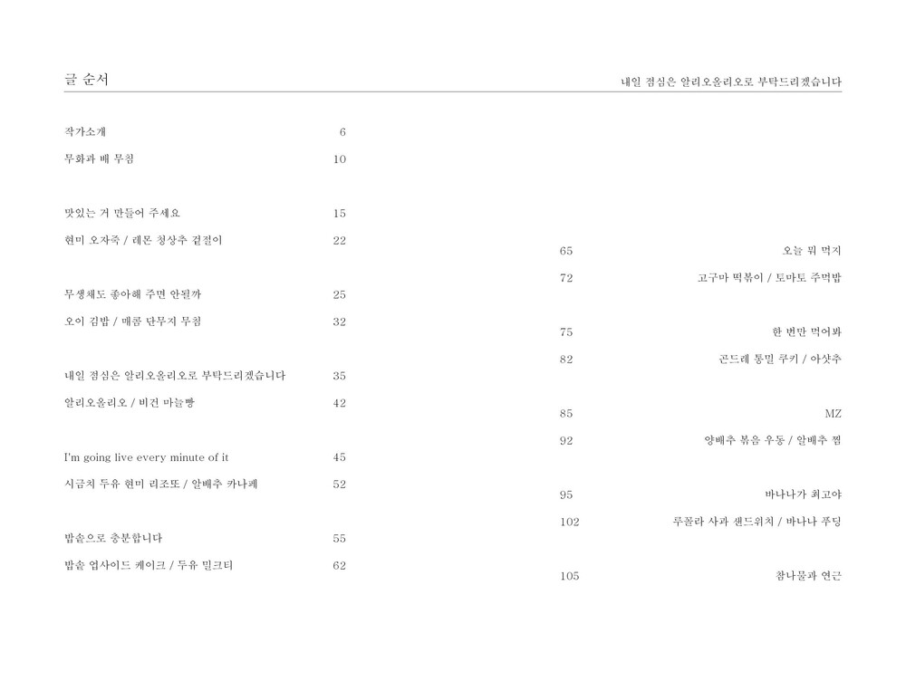 대안학교에서 비건식으로 식단을 꾸리며, 매일 아침 밥을 지으며, 아이들과 부대끼며 겪은 일들과 떠오른 생각들을 엮었습니다. 그것 만으론 모자를까 아이들에게 내었던 비건 요리 만드는 법도 슬쩍 곁들여내었고요. 이 책을 읽으며 채식은 풀만 먹는 것이라는 생각을 한 겹 덜어낼 수 있다면 좋겠습니다.