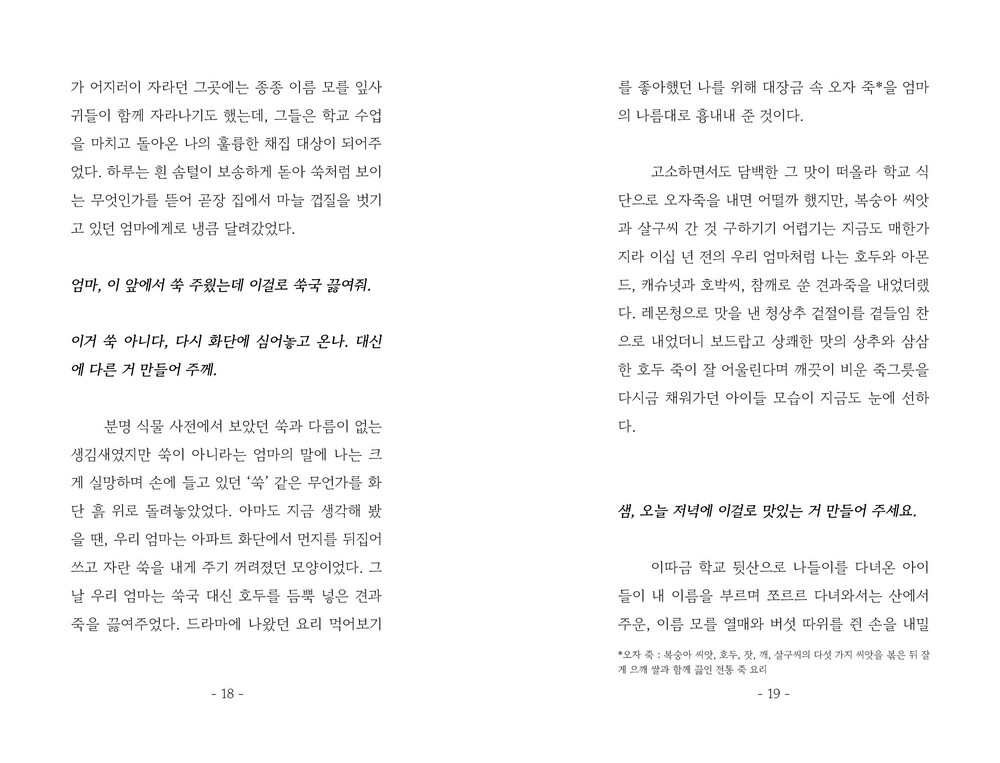 음식을 통해 계절이 변해감을 아는 일 그 모두를 좋아합니다.