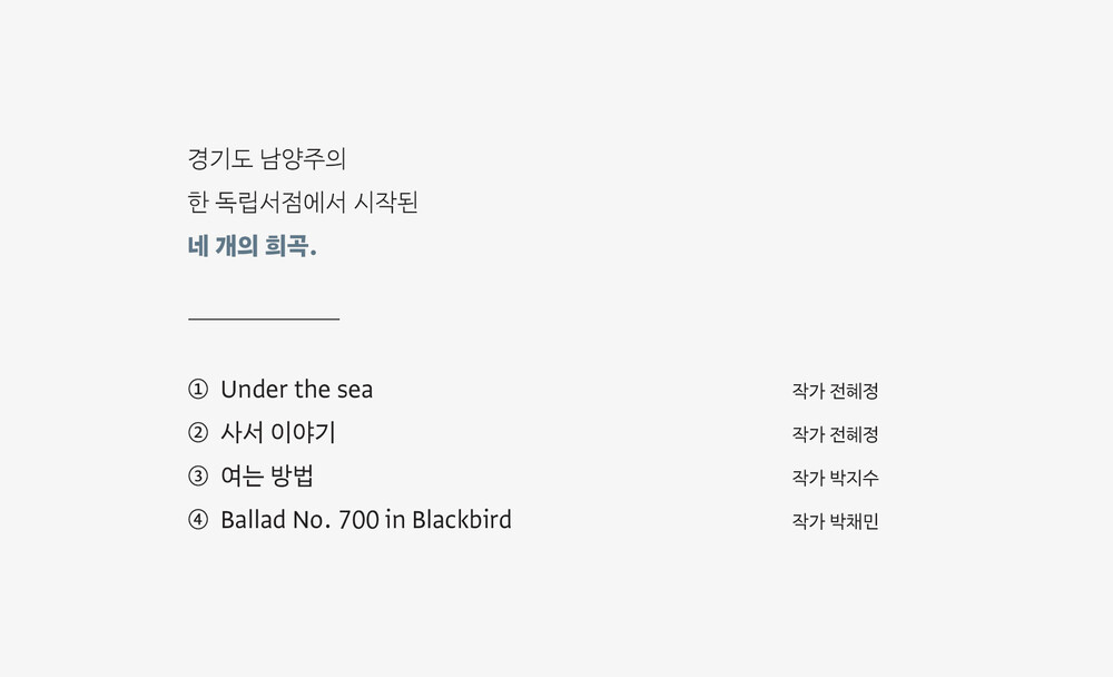 경기도 남양주의 독립서점 '블랙버드북숍'에서 올린 두 번의 연극, 네 개의 희곡.