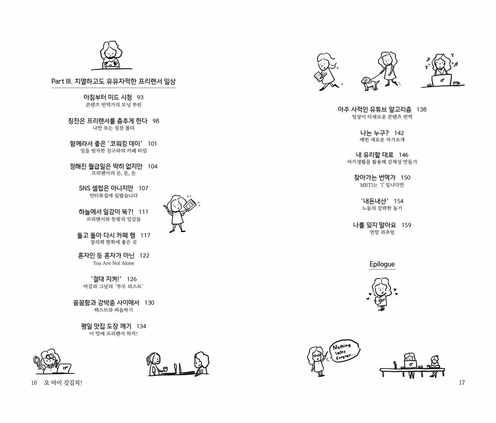 우여곡절 많은 저자의 경험담들을 읽다 보면 왠지 마음이 짠~하다가도, 유유자적하고 자유로운 프리랜서 생활의 매력에 서서히 빠져들게 될 거예요.