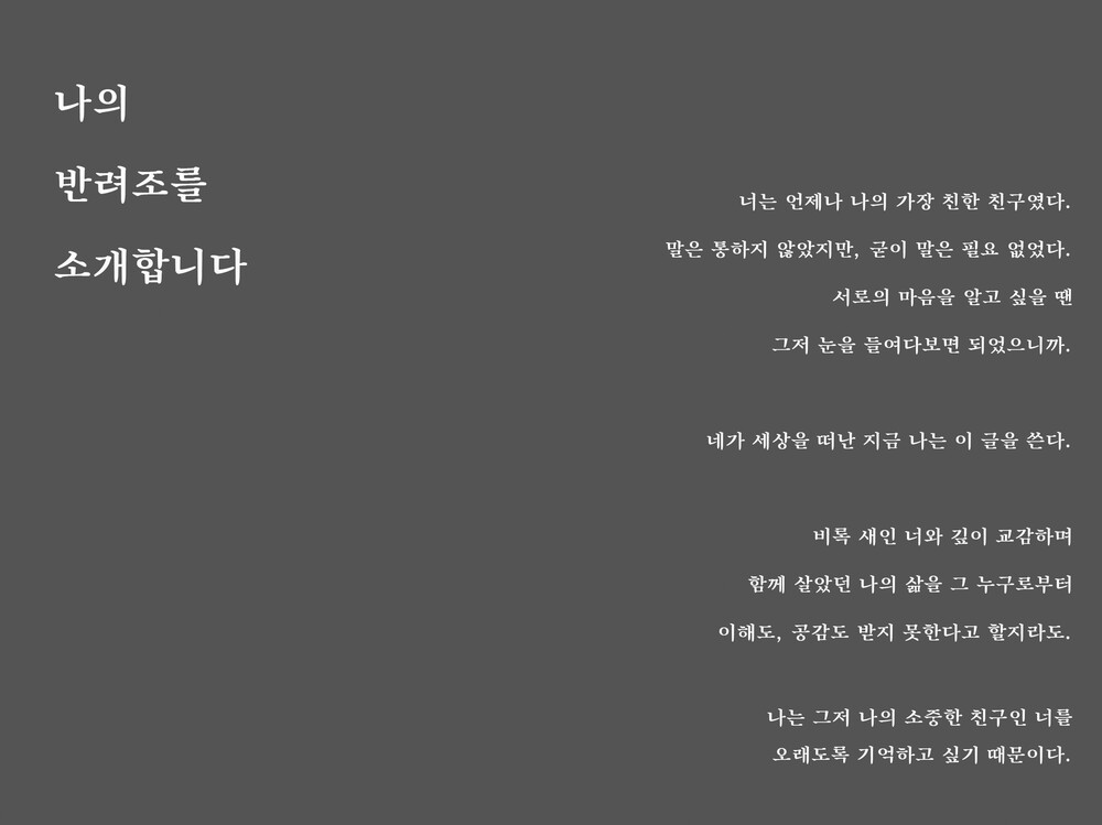 어쩌면 반려동물은 자신과 함께 했던 사람들에게 이렇게 온몸으로 알려주는 것일지도 모르겠다고.