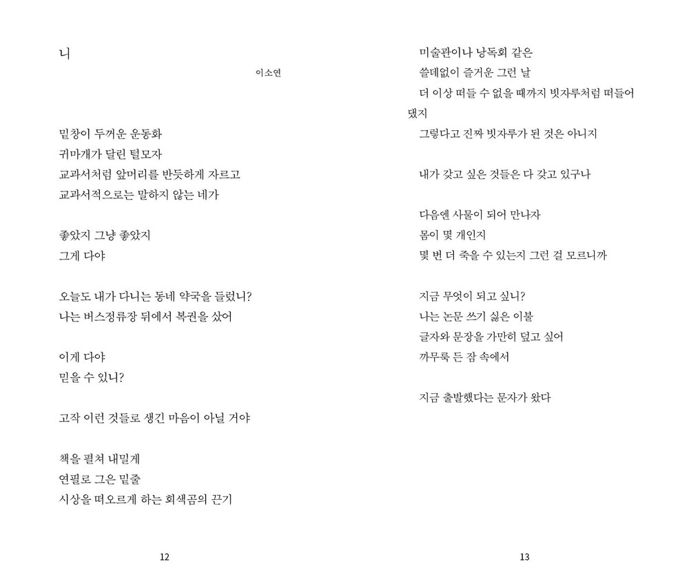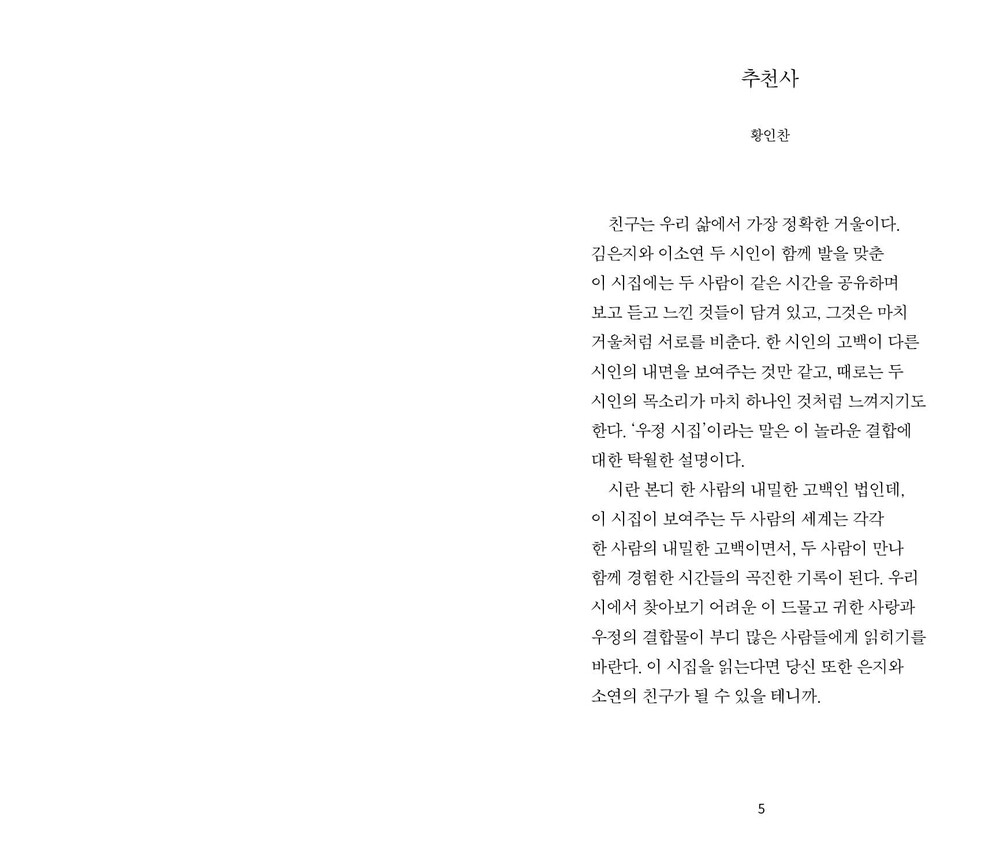 이 시집을 읽는다면 당신 또한 은지와 소연의 친구가 될 수 있을 테니까.