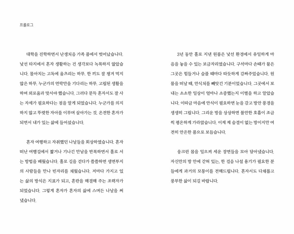 그렇게 혼자가 혼자의 삶에 스며든 나날을 써냈습니다.
