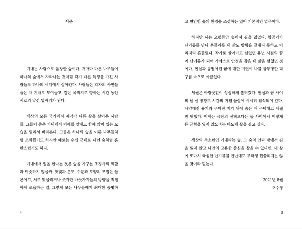 그 숲의 안과 밖에서 길을 잃지 않고 나만의 고유한 중심을 찾을 수있다면,
