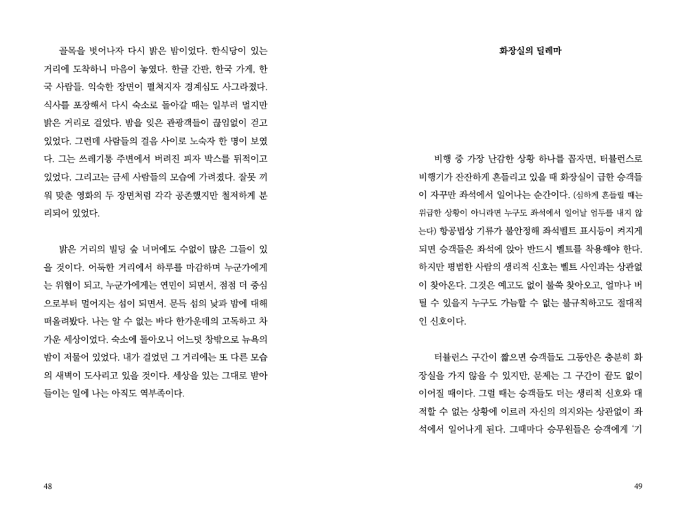 인생의 한 구간을 자신만의 보폭으로 성실하게 걷고 있을 뿐인데 터뷸런스는 예보도 없이 찾아온다. 30p